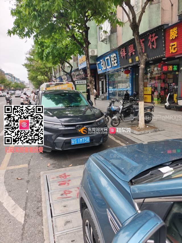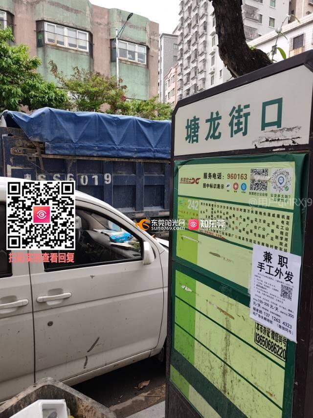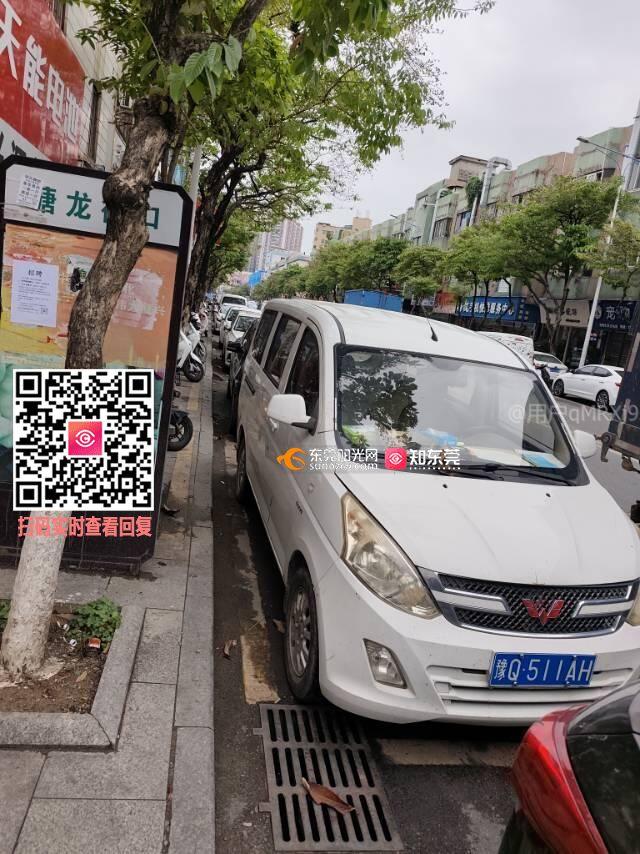 长安镇塘龙街口公交站很多车辆乱停放