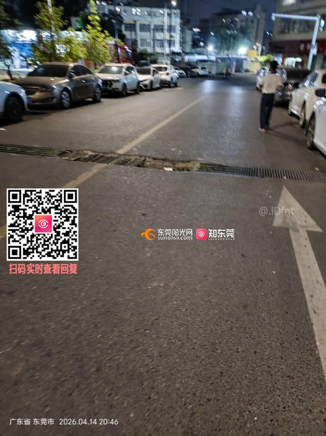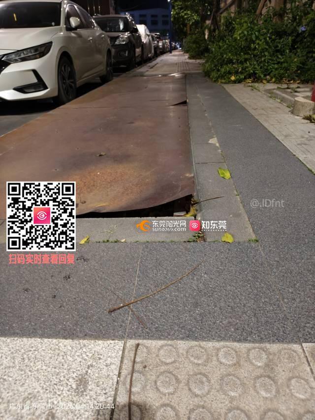 人行道路下水道贴片盖子翘起,机动车道下水道盖子不见一个大坑。