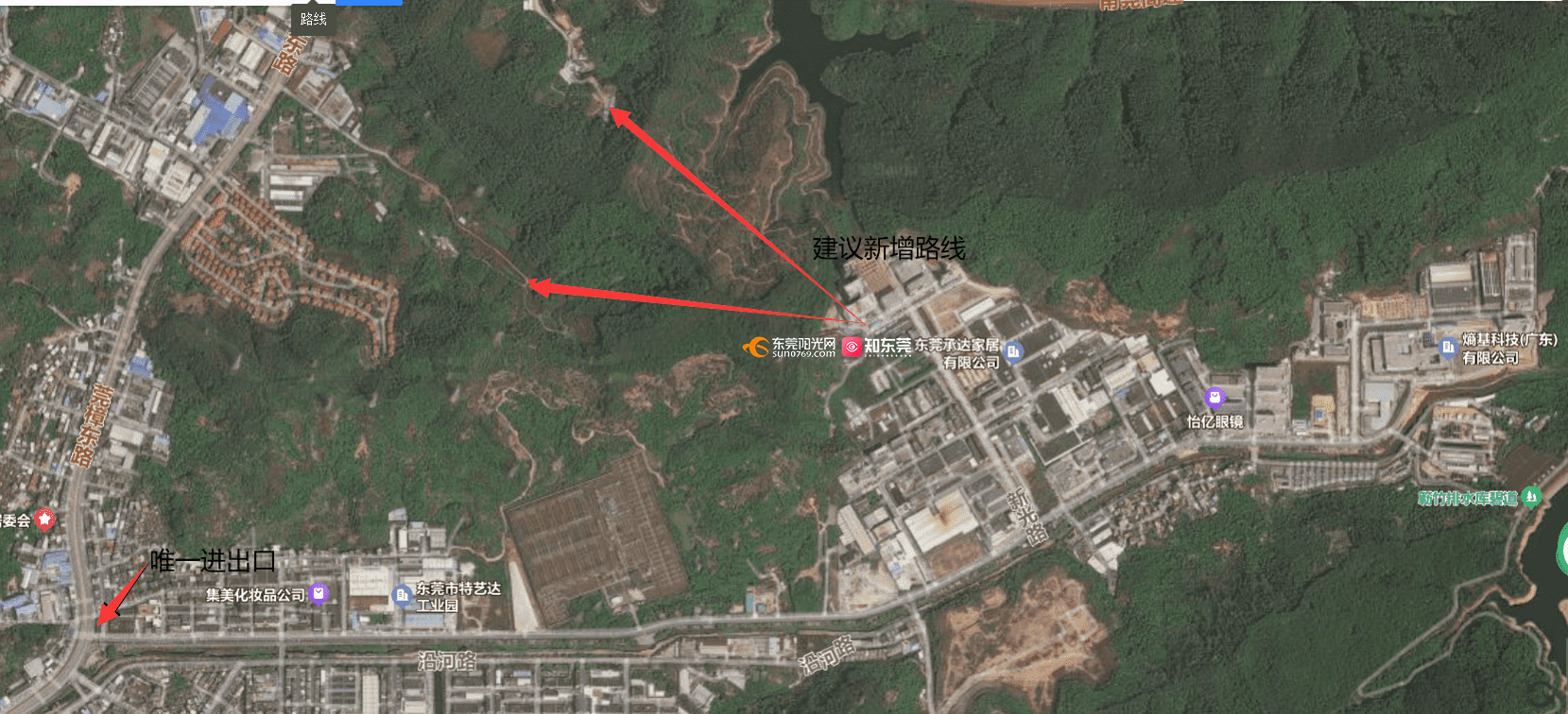 金河竹排村工业区作为樟木头重要工业园区,多家大型工厂道路繁忙。进出工业区目前只有一条主干道,单向还只有一条车道,(本来两条其中左右两边一条已经划线停车位)。平时工人上下班又与樟木头实验小学上下课时间一致导致路口拥堵严重,希望政府能看见长远发展规划新建一条道路可以通往竹排村工业区。下图为个人遐想提供参考。