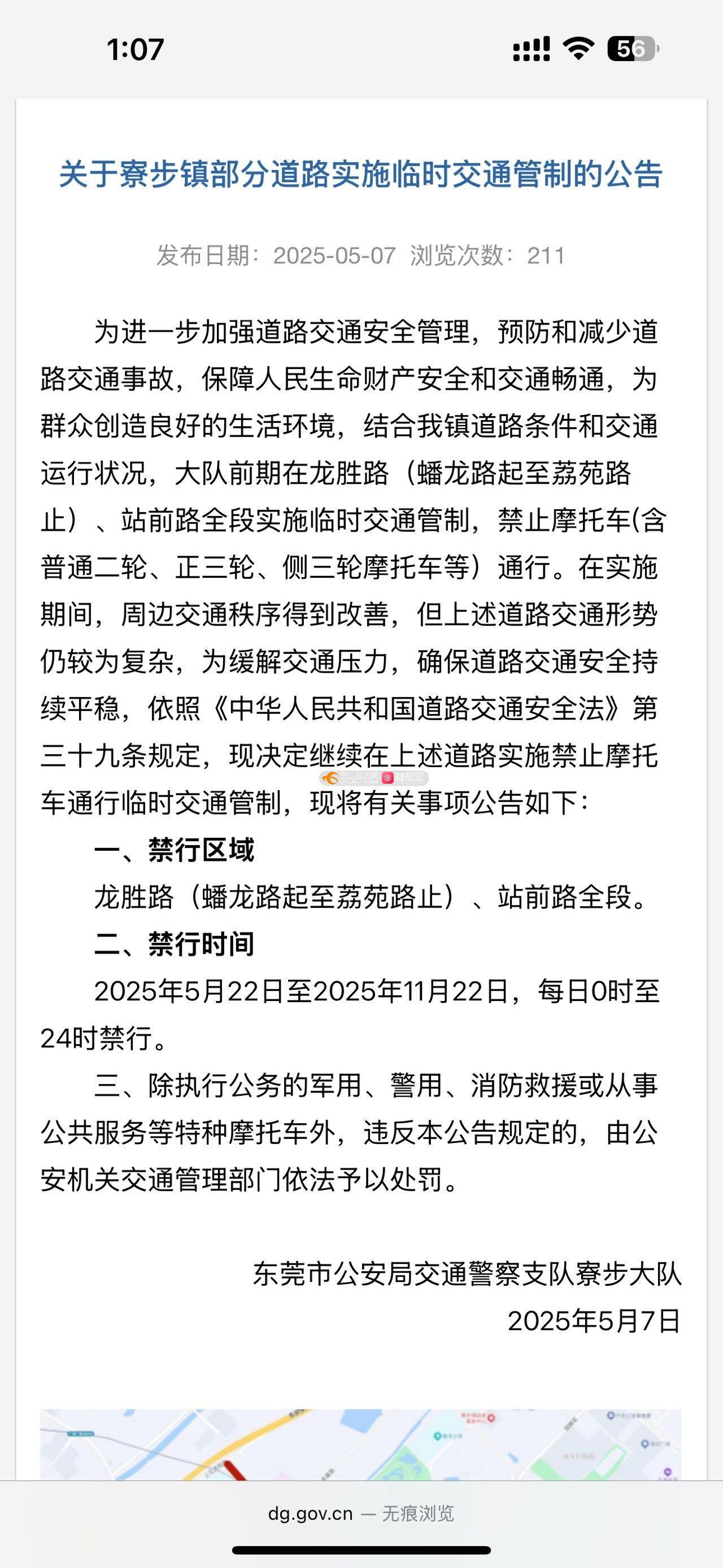 尊敬的市民,您好!您反映的问题已收悉,现回复如下:经了解,东莞篮球中心周边路段车流量较大,摩托车噪音以及摩托车飙车的投诉较多,交管大队为了进一步加强道路安全管理,预防和减少道路事故,保障人民生命财产安全和交通畅顺,为群众创造良好的生活环境,依照《中华人民共和国道路交通安全法》第三十九条的规定,结合寮步镇道路条件和交通运行状况,决定在龙胜路(蟠龙路起至荔苑路止)、站前路全段禁止摩托车通行,并设置进行标志。