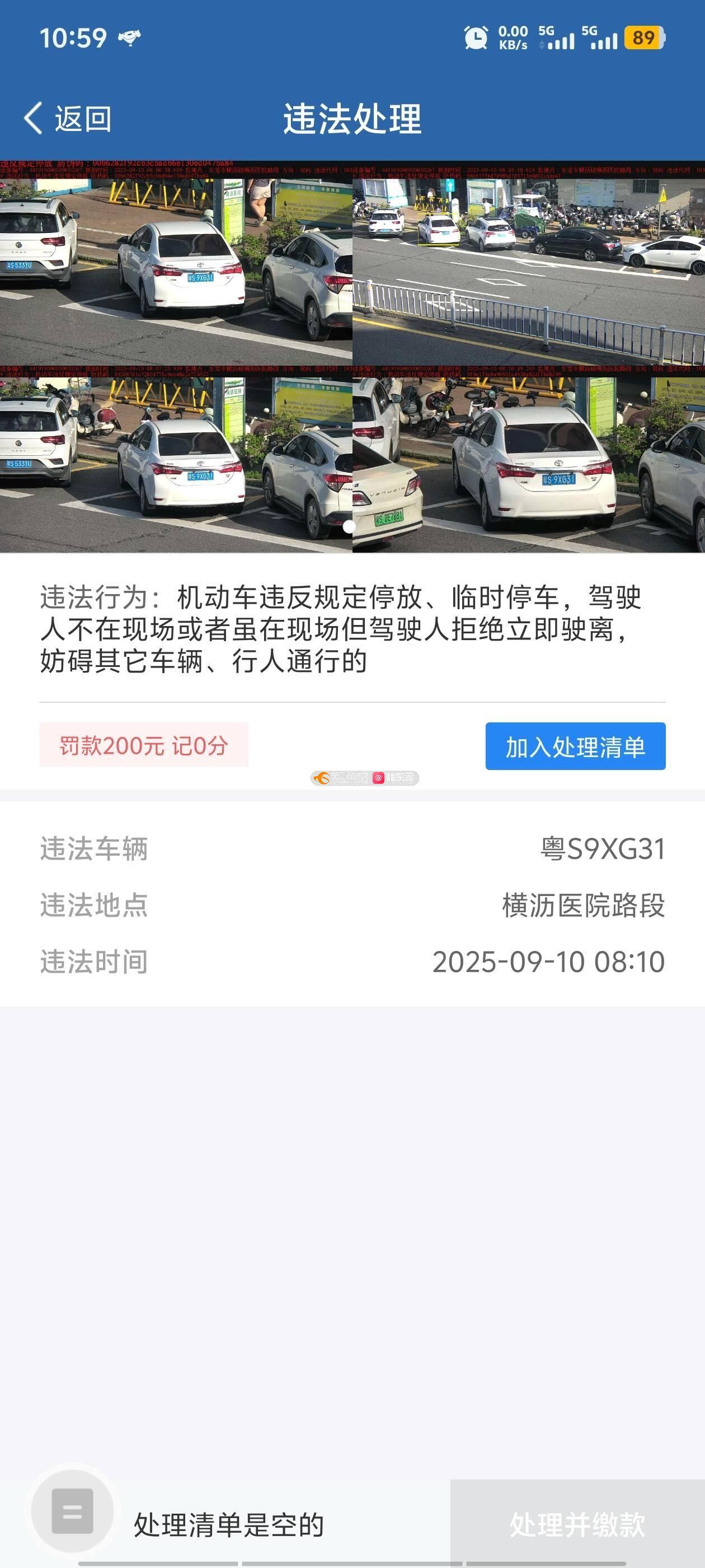 我9月10号早上在横沥医院门口临停10分钟,去医院做治疗,当时并没有收到信息和电话通知移车,如果收到会马上挪车,12号收到短信说违停罚款,随即12号申请违法消除,15号才回复被驳回,这种情况此次是否可以只做警告,免除罚款,望帮忙处理,谢谢!