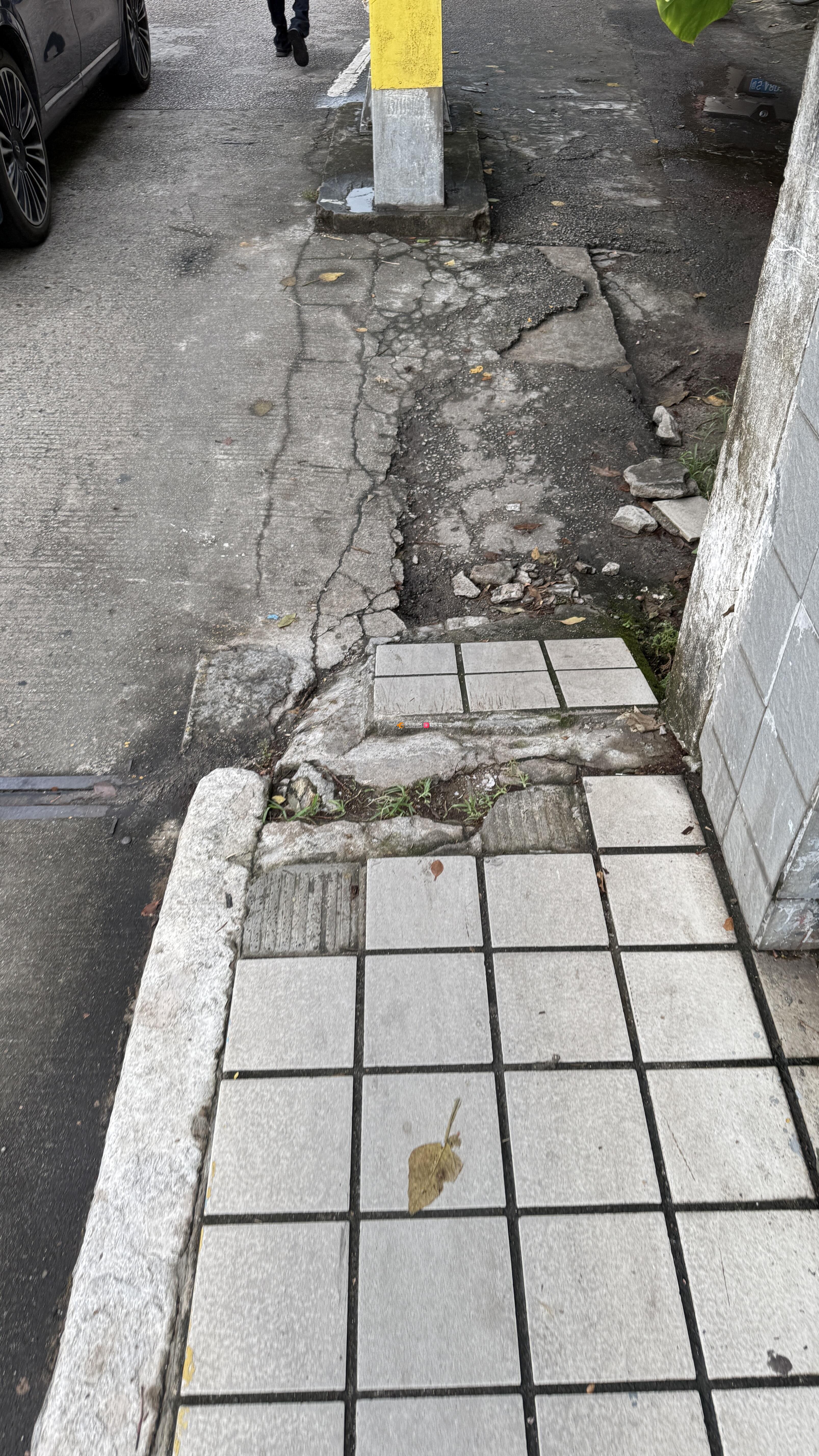 尊敬的市民,您好!您反映的问题已收悉,现回复如下: 我分局工作人员已到现场了解情况,并通知管养单位跟进,管养单位已对人行道破损进行了修复,解决通行问题。 如有疑问,您可联系东莞市城市管理和综合执法局万江分局(电话:0769-23380442)。感谢您对我们工作的理解和支持!