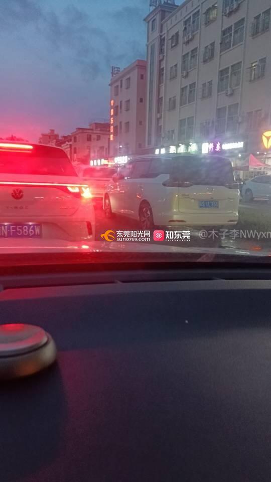 谢岗曹乐市场门口,修路,三车道,有一条被停车占用,导致只剩一条车道同行,严重拥堵