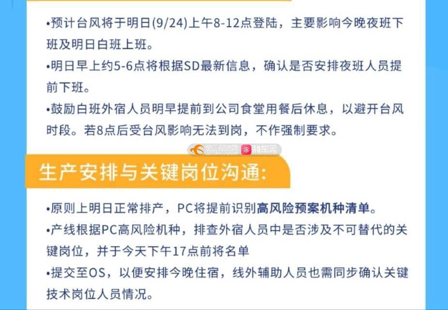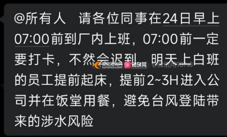 五停不仅要全上班,还要提早来上班,东坑维智角社这边23号晚上要求上夜班,24号要求白班外宿人员早上提前2-3小时来上班,是让外宿员工早上骑车出来兜台风上班吗?让全厂几千号人冒风险上班,如何全部保证人身安全,这已经违背了人身安全第一的原则,是有多大利益拿那么多人安全来作赌注,还是说五停中有部分工厂有特殊权利?