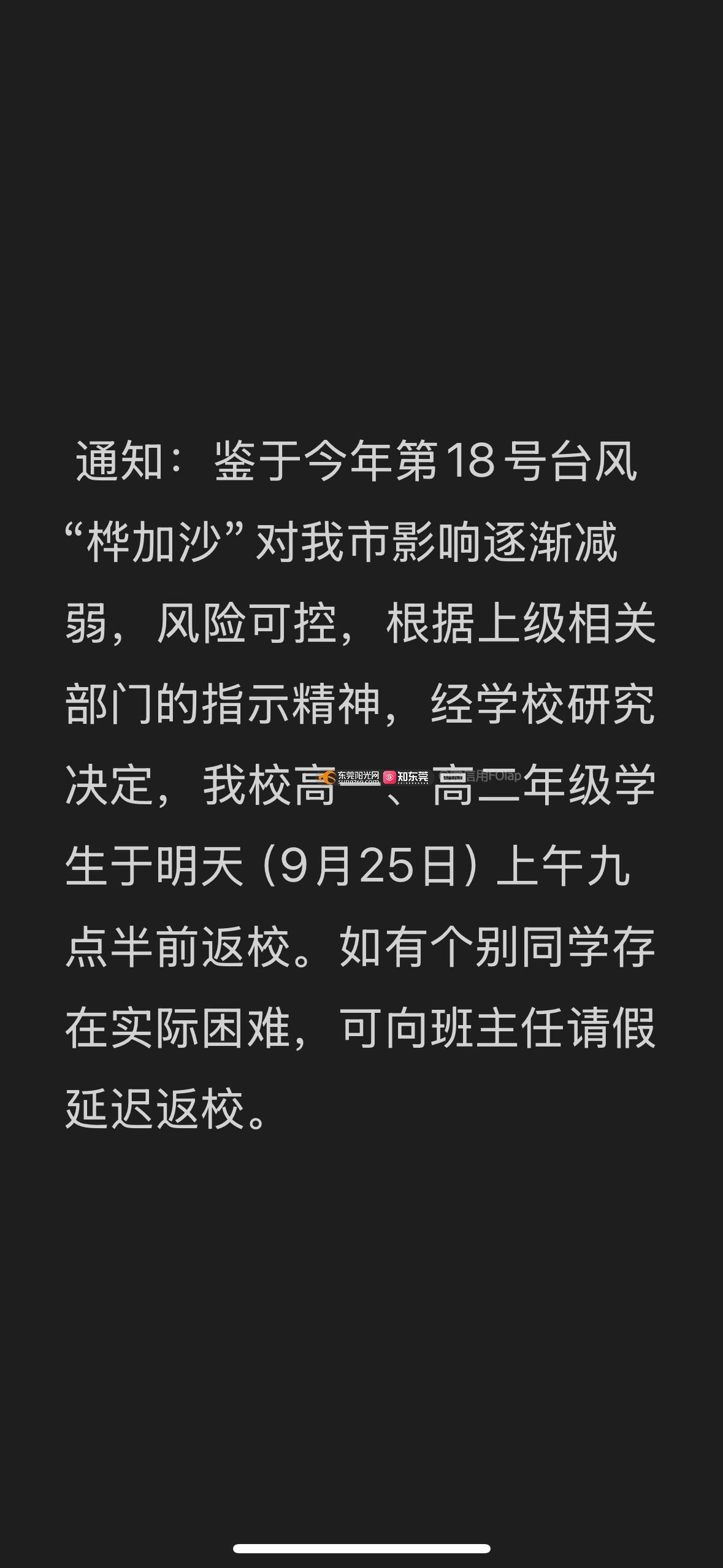 经台风天气影响 学生都没有准备好上学需要的物品 学校要求学生在25日上午9:30前返校 时间过于紧张 原计划是25日下午6:00前返校 临时变卦