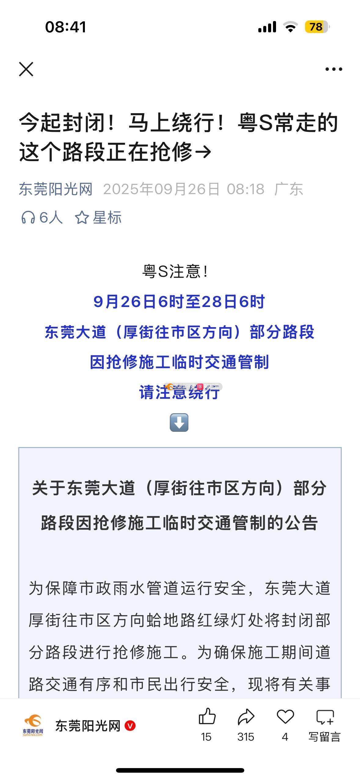 投诉东莞大道封路不提前通知