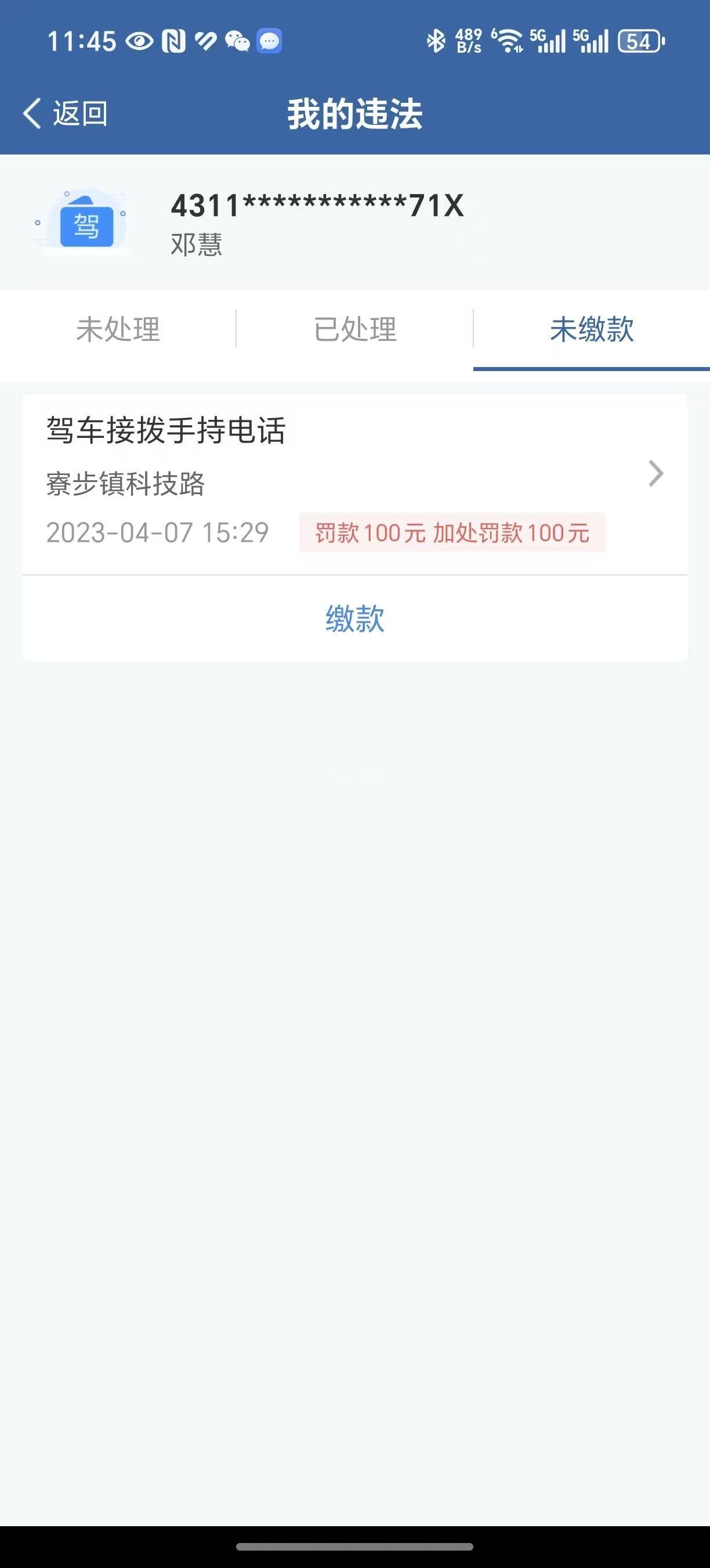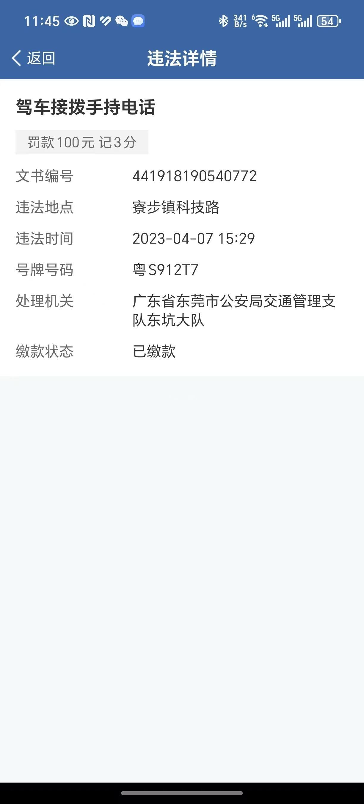2023-04-07违法处理与现场早已缴清罚款驾史证上一直记录3分未处理