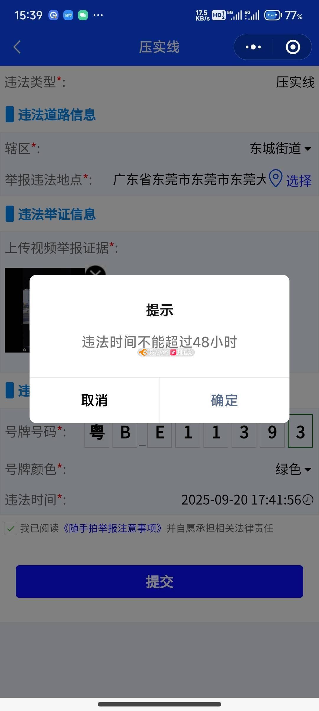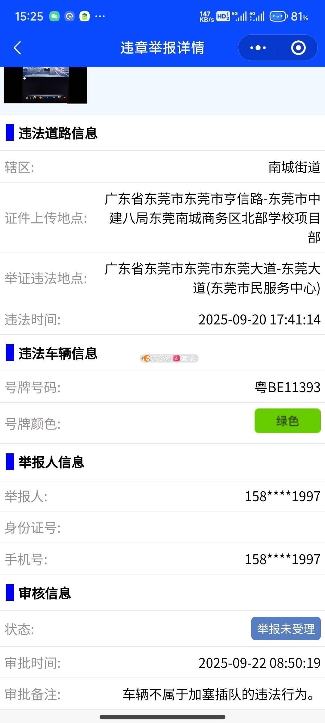 东莞随手拍案件号2025092018101124145045举报加塞不受理,有加塞全程录像,后续重新举报压线时以违法超过48小时无法举报。