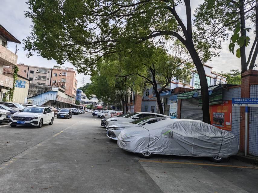 东城周屋温塘冚下工业区共公街道无人打扫,地面树叶多。