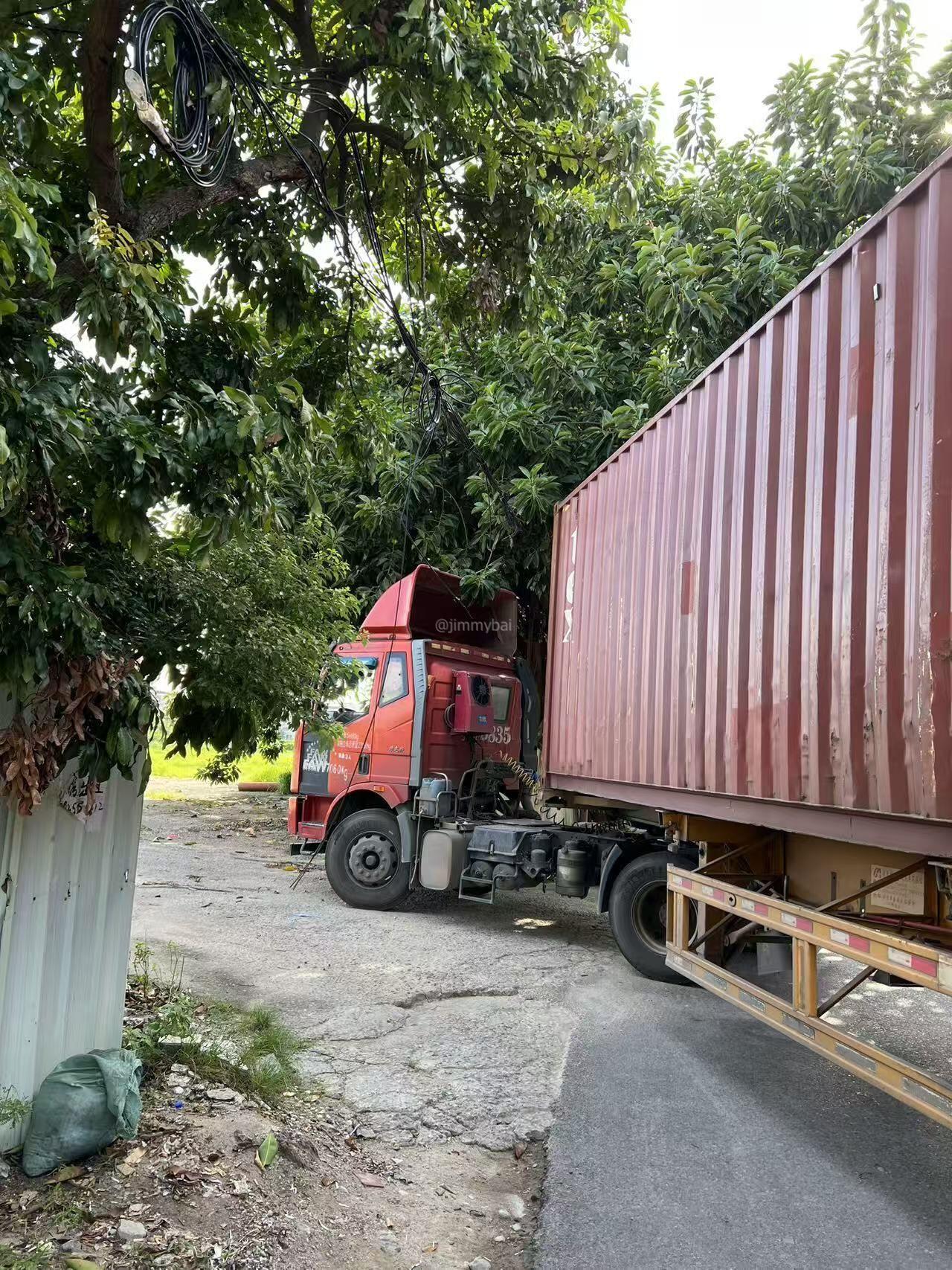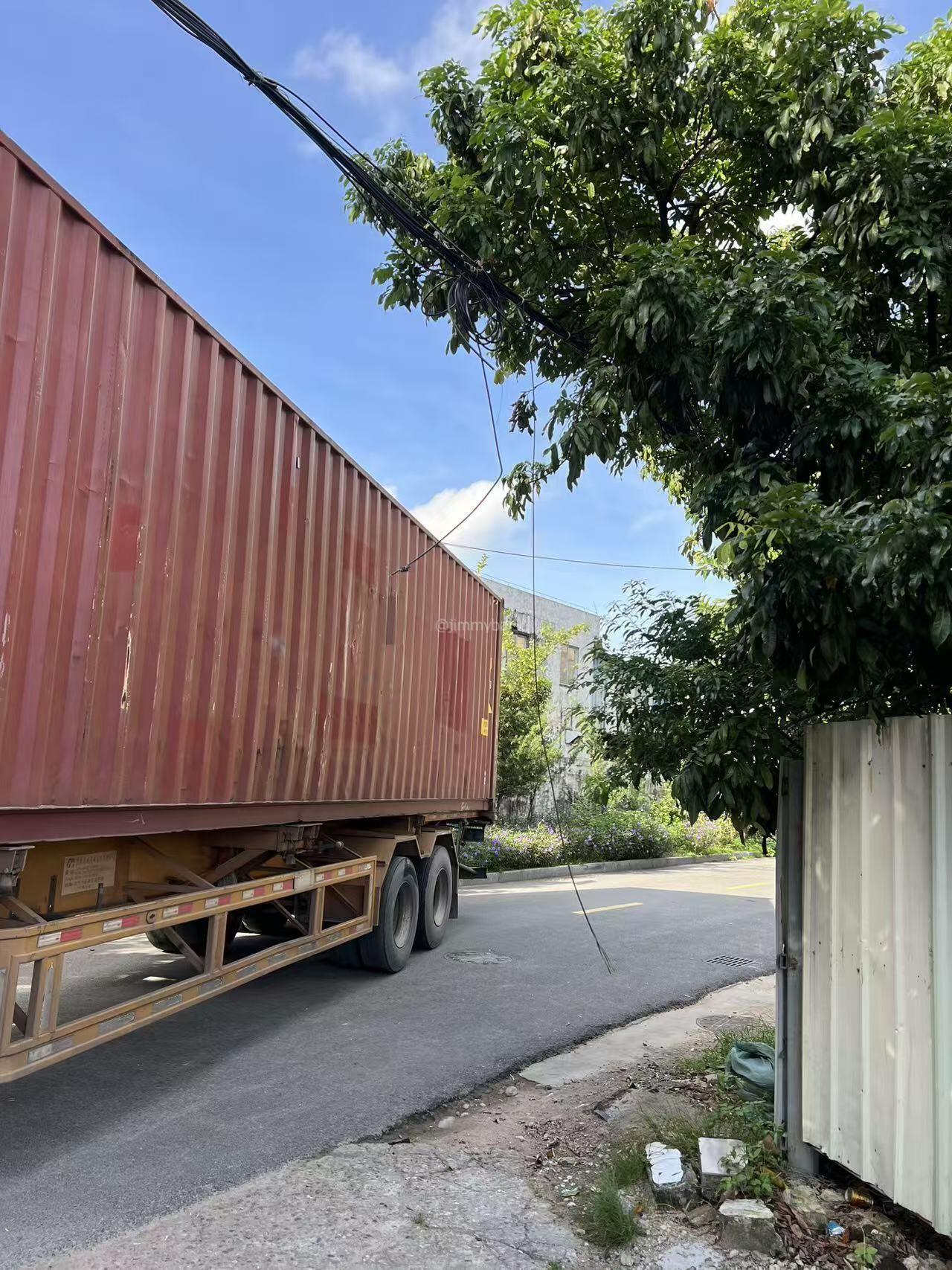 沙田镇先锋村海滨路51号加隆工厂路边线路没有进行三线改造,将近100米都没有一个电线杆,将近10条线路全部是借用树枝来支撑,且线路高度太低,严重低于4.5米的规定高度,导致货柜无法进出,经常将电线挂断,极易产生触电风险,线路也是杂乱无章,请协助整改,以利货柜进出,谢谢。