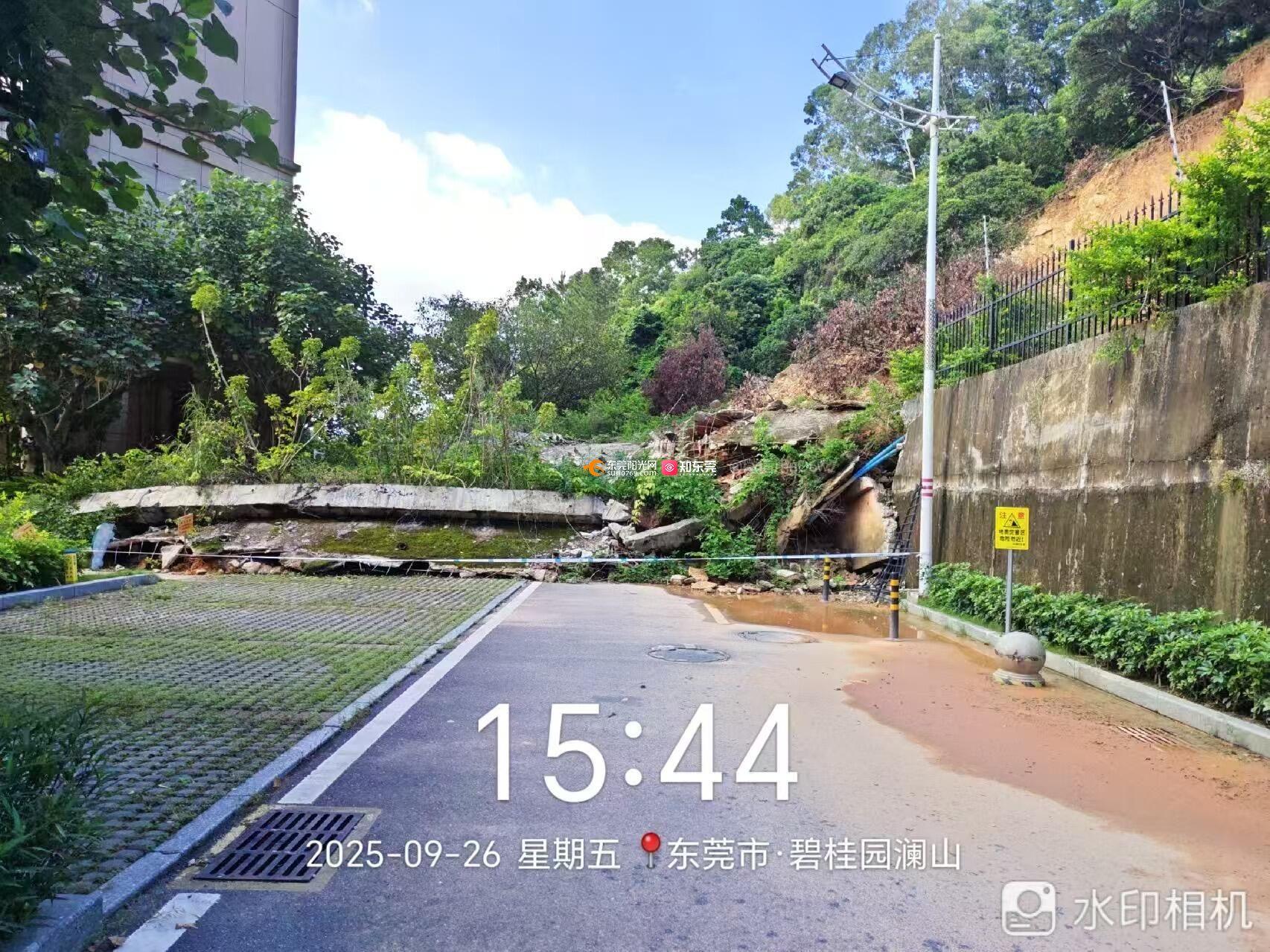 樟木头碧桂园澜山山体滑坡几月未处理严重影响了小区居民的安全及交通出行