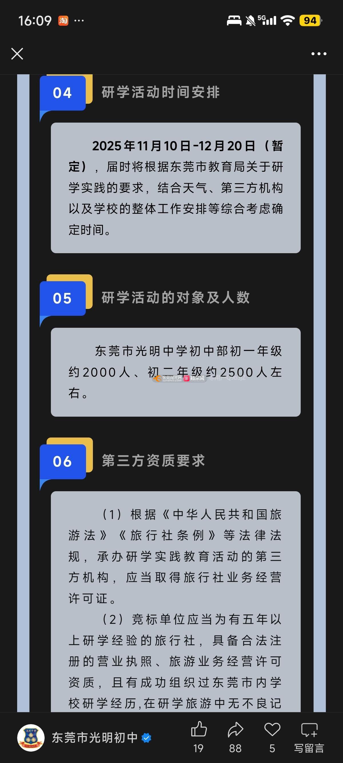 光明中学不让初三生研学