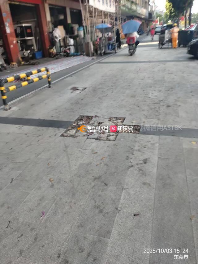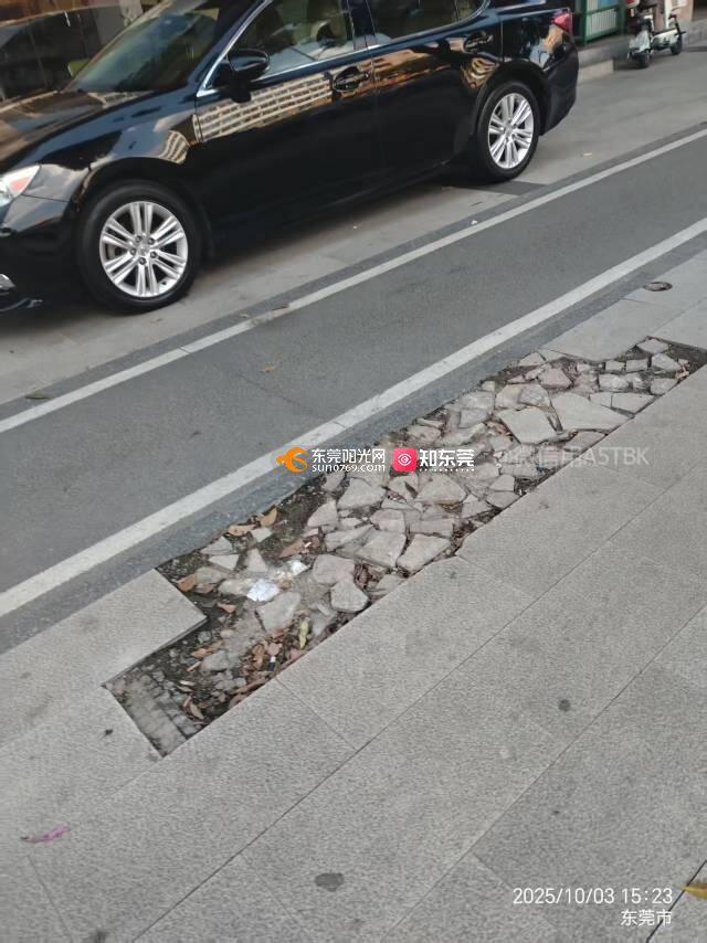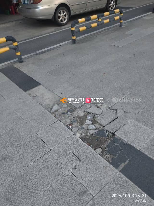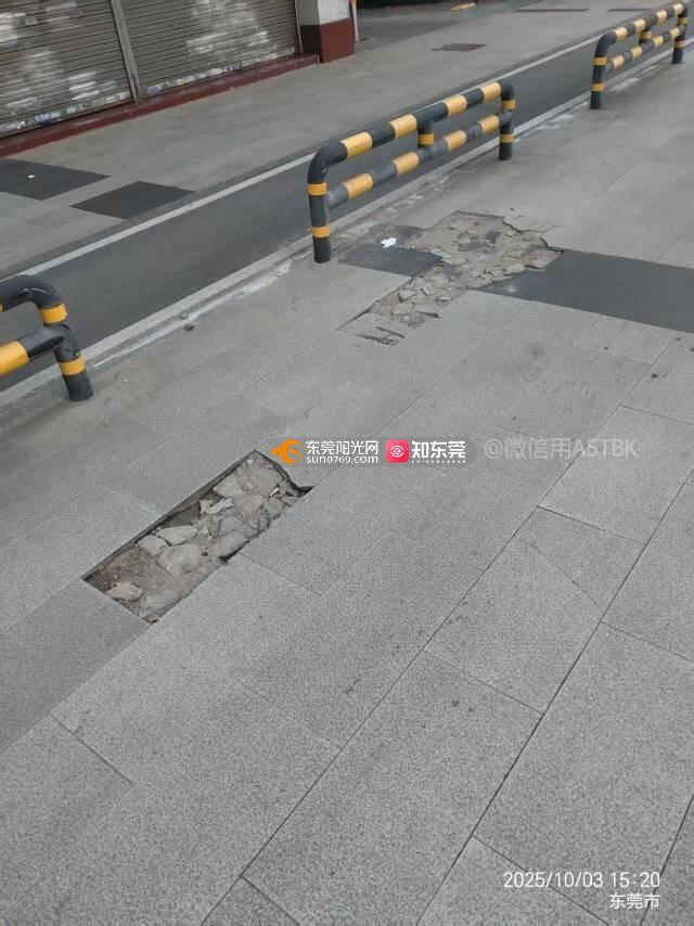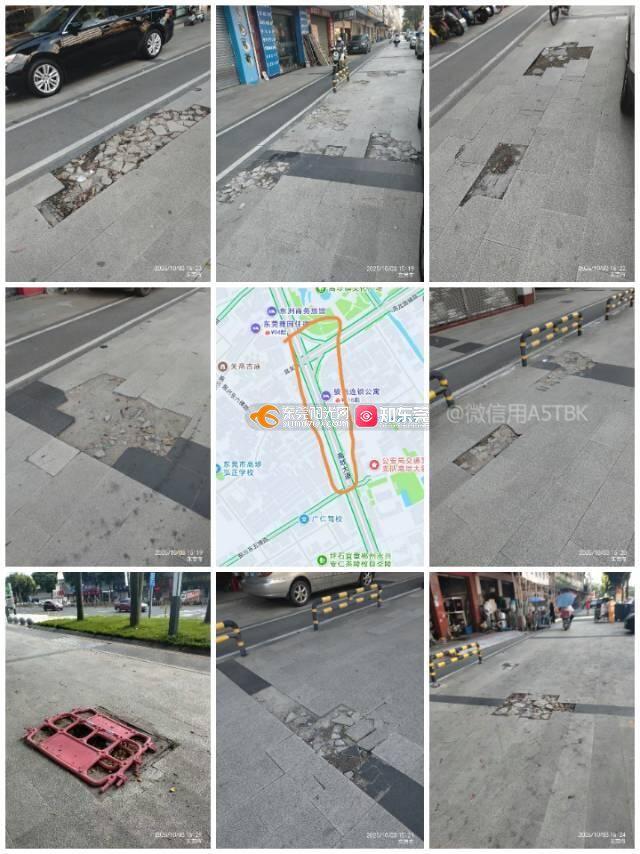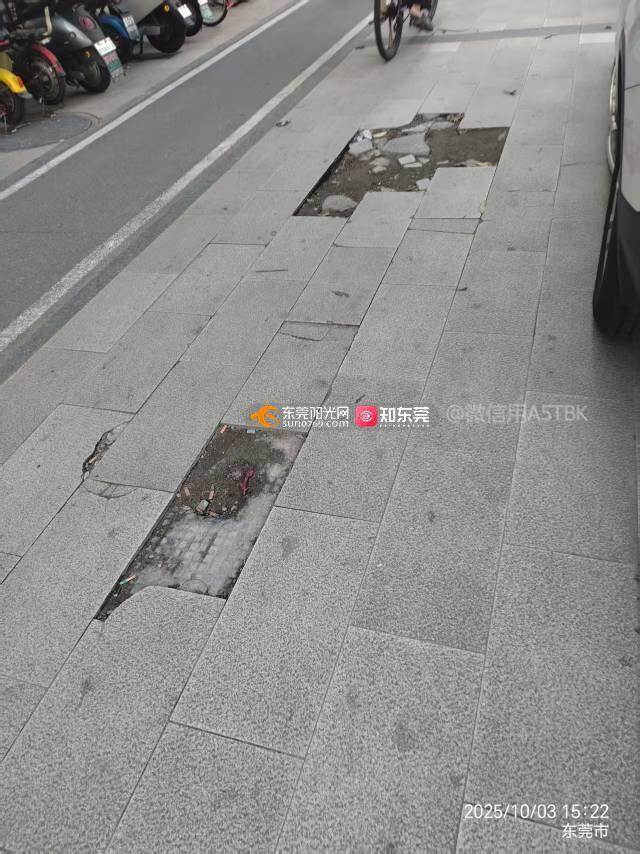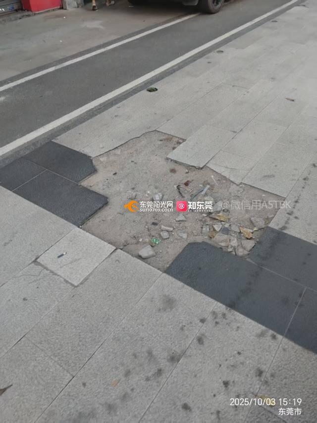 高埗大道人行道地砖大面积空白、开裂,影响交通行驶,无人管理