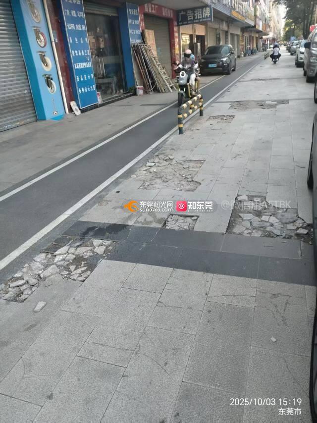 高埗大道左侧人行道存在大面积的地砖缺失、开裂,电动车不方便经过,人流量一多就拥堵,而且靠近学校,很影响正常交通,包括附近的文化广场也存在类似的问题。大概几个月前就有,一直没人来修缮,望有关部门尽快解决