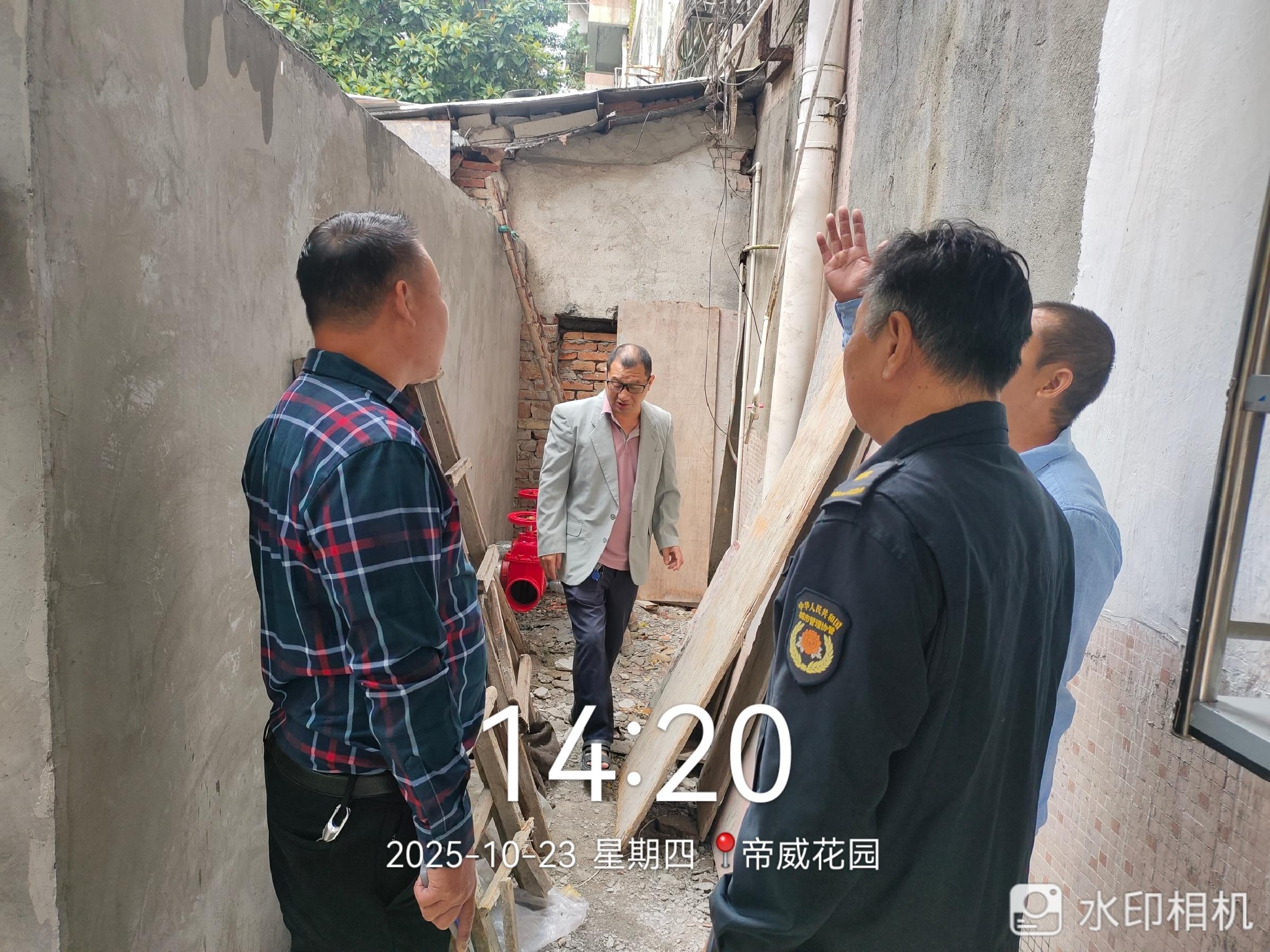 尊敬的市民,您好!来信内容已收悉,现将相关办理情况答复如下: 经核查,帝威花园威雅阁电梯旁存在消防水池维修情况,现场暂未发现新增违法建设行为。下来,城管分局将继续加强巡查,严控新增违建行为。 感谢您对我们工作的理解和支持!