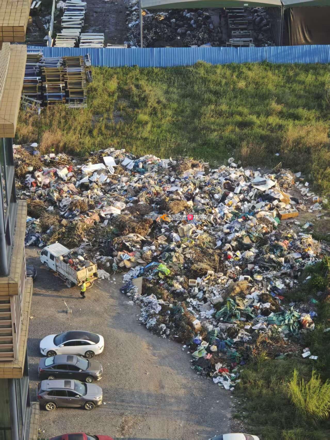 住宅小区隔壁露天停车场堆放垃圾臭气冲天