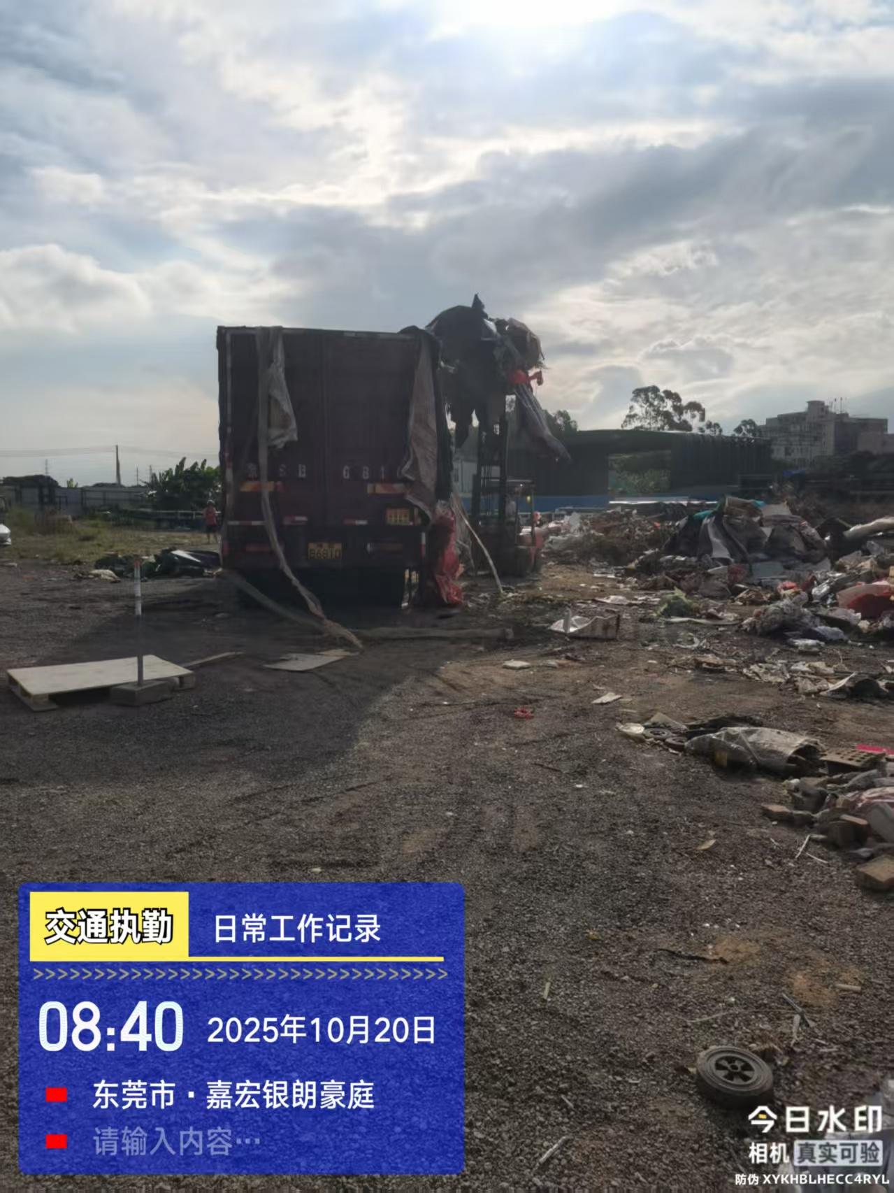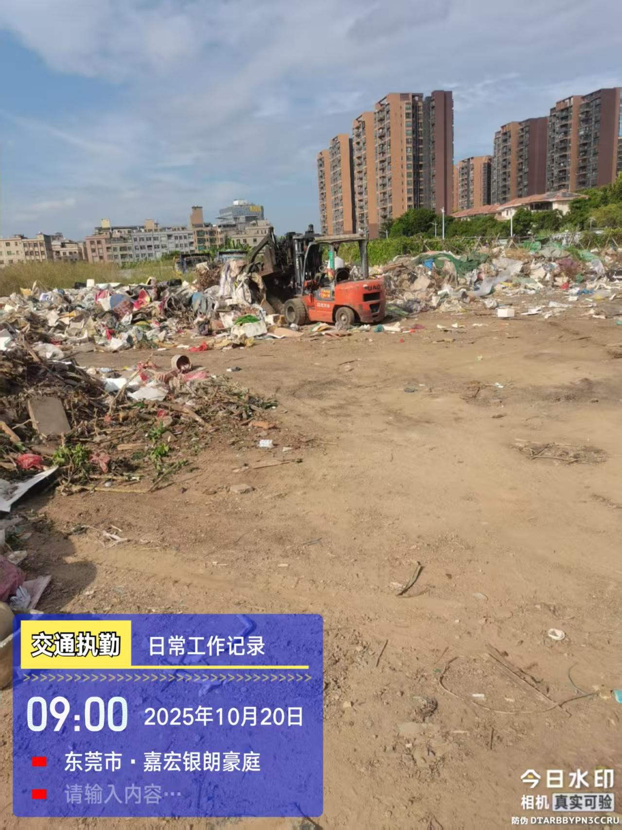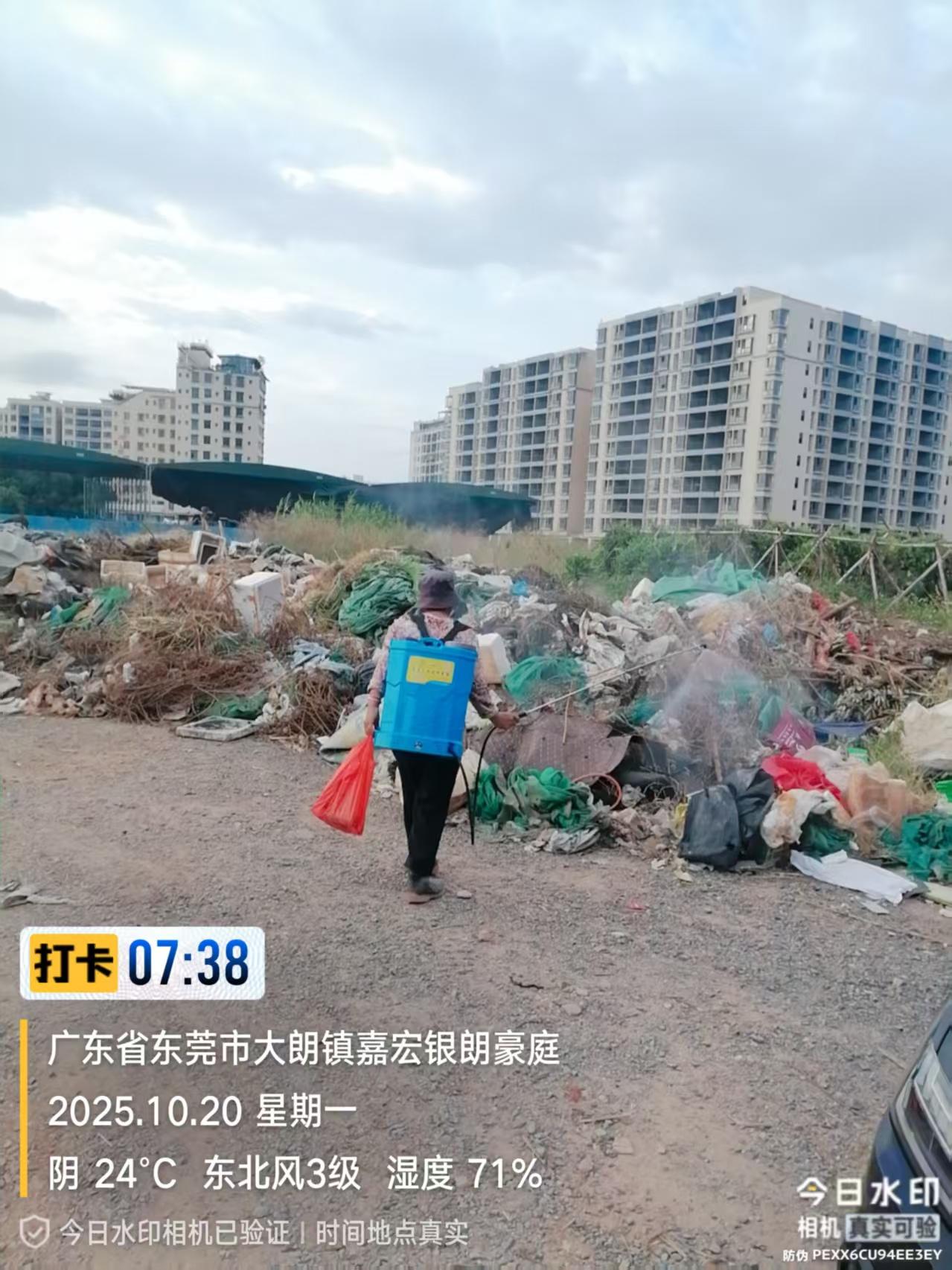 在东莞市大朗镇景丰路露天停车场堆放大量垃圾,景丰路有三个住宅小区,臭气冲天,严重滋生蚊虫,当前登革热和基孔肯热等传染病高发季,有极大传染病风险。请有关部门重视