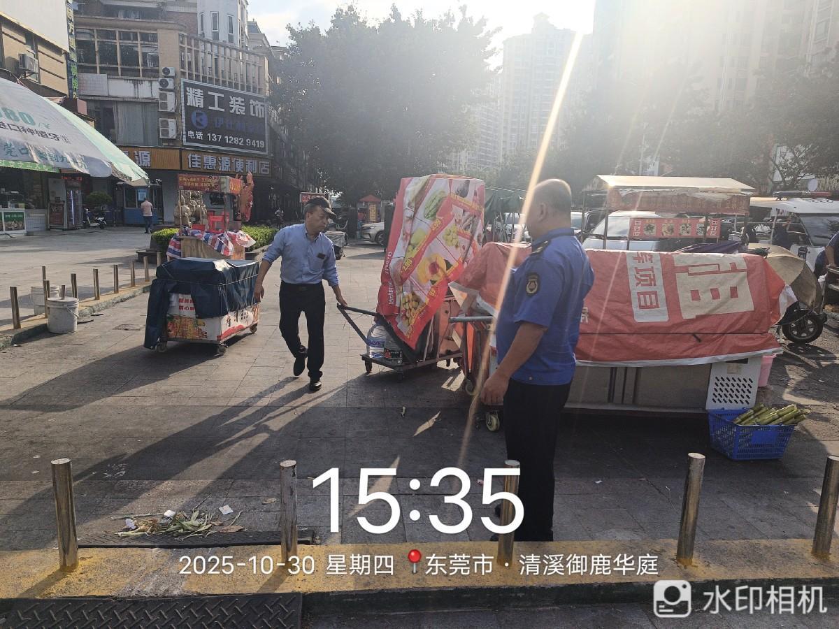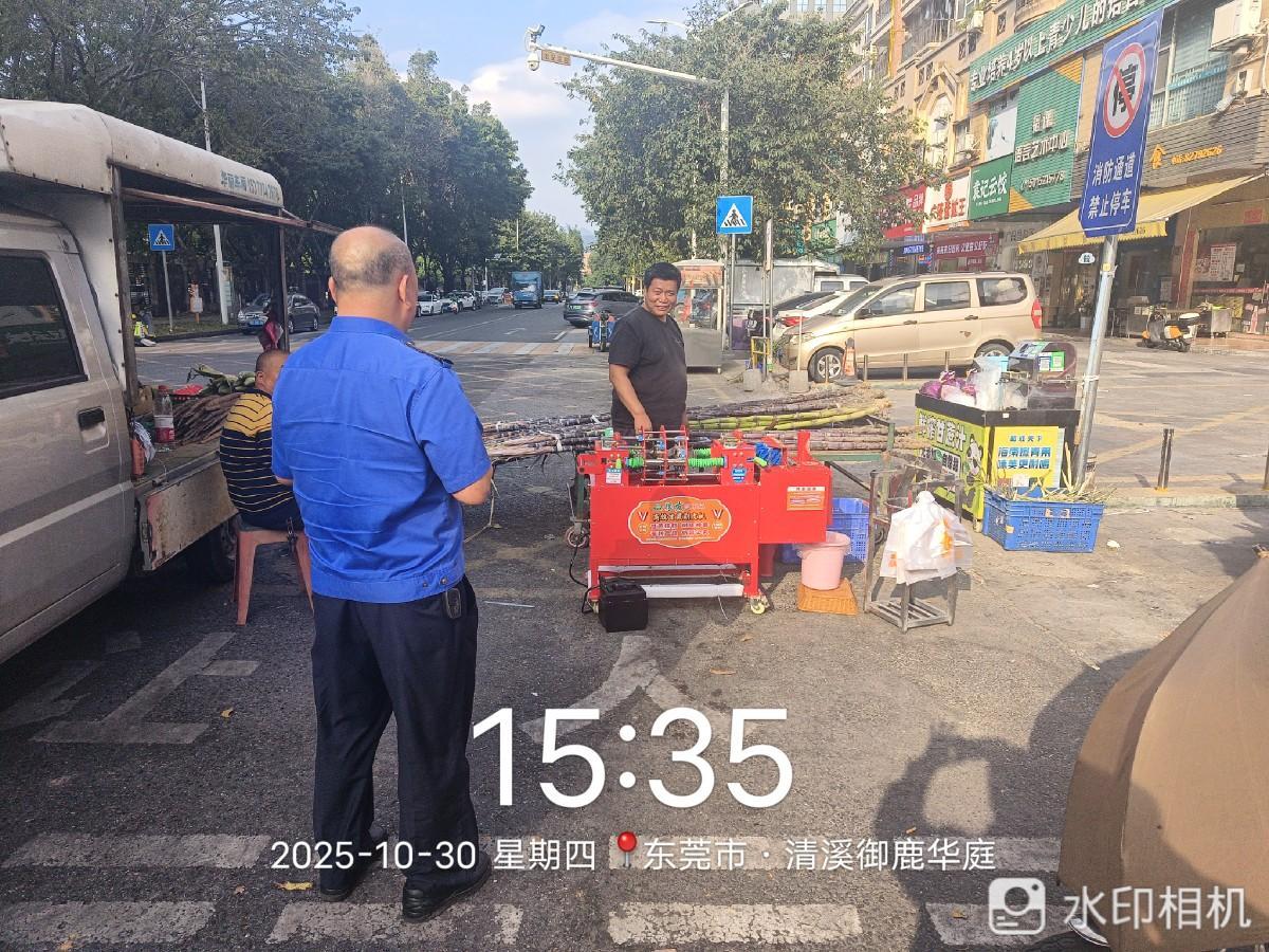 尊敬的市民,您好!您反映的问题已收悉,现回复如下:接到投诉后,东莞市城市管理和综合执法局清溪分局工作人员于2025年10月30日到现场巡查处理,工作人员向流动摊贩普及城市管理规定和法律法规,引导他们认识到占道经营对城市环境和交通秩序的影响,自觉遵守相关规定,经教育劝导后,流动摊贩清理地上油渍遍后离开;接下来,东莞市城市管理和综合执法局清溪分局会增加巡查的频次和力度,对流动摊贩进行劝离和纠正其占道经营的行为。感谢您对城市管理工作的理解和支持。