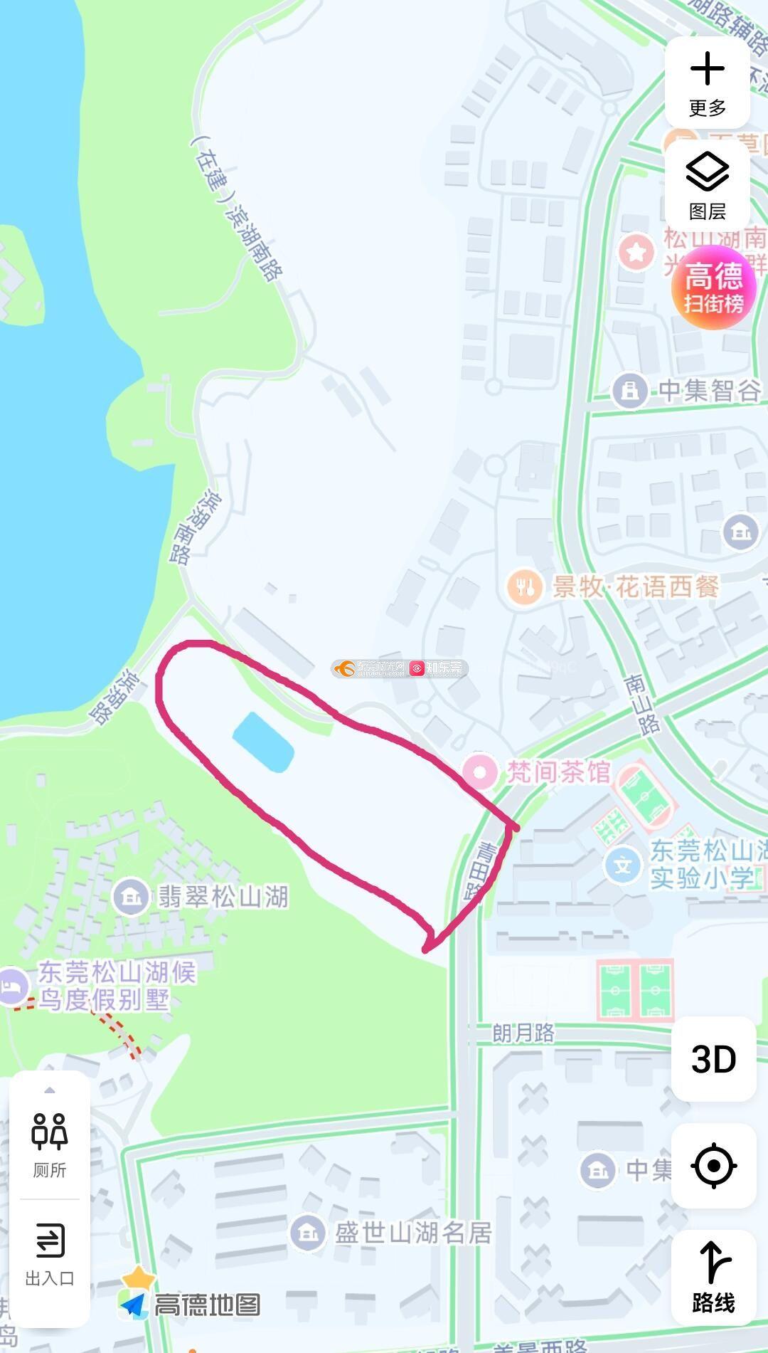 松山湖实验小学附近的空地几年了一直闲置,旁边的朗月路路面基本上也是落叶杂草一堆,请问这几块空地是否有开发计划? 松山湖科学城的建设还是应该加快一些,从华为18年底大规模人员迁入,到现在已经6年了,松山湖南部感觉变化不大,松山湖很多的商业和公共功能的规划都集中在北部和中部,比如万象汇,欢乐海岸,松山湖社区服务中心,通湖礼廊,轨道交通等等,南部除了增加了一个公园和学校,市政方面的精细度差很多,请问是否有规划提升下? 建议这块地搞个健身公园,羽毛球球场,篮球场之类的(详见图片红框内位置)