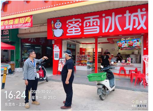 大朗水厂路28号附近,犀牛陂市场外面新开的蜜雪冰城循环播放促销广告严重扰民