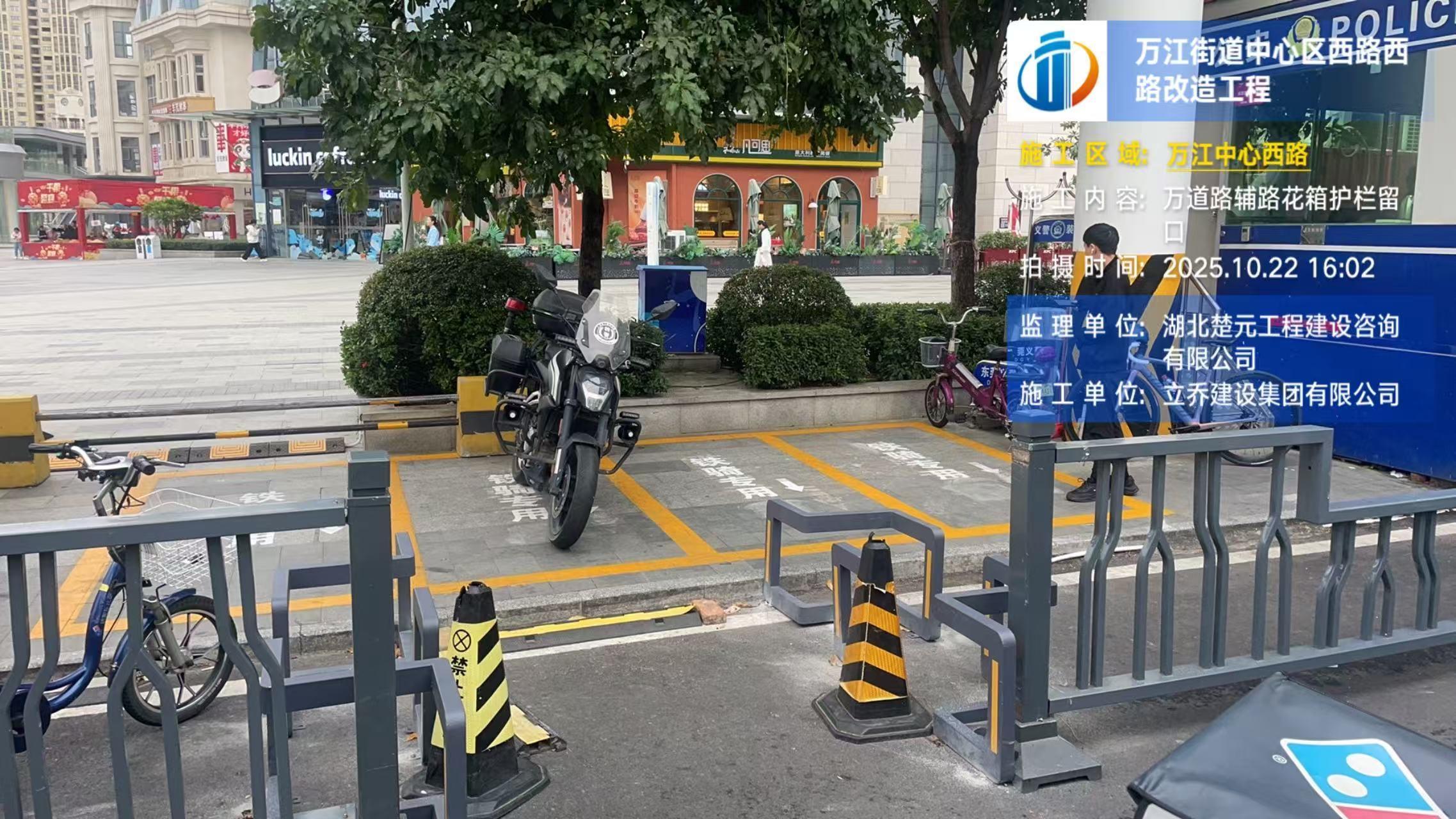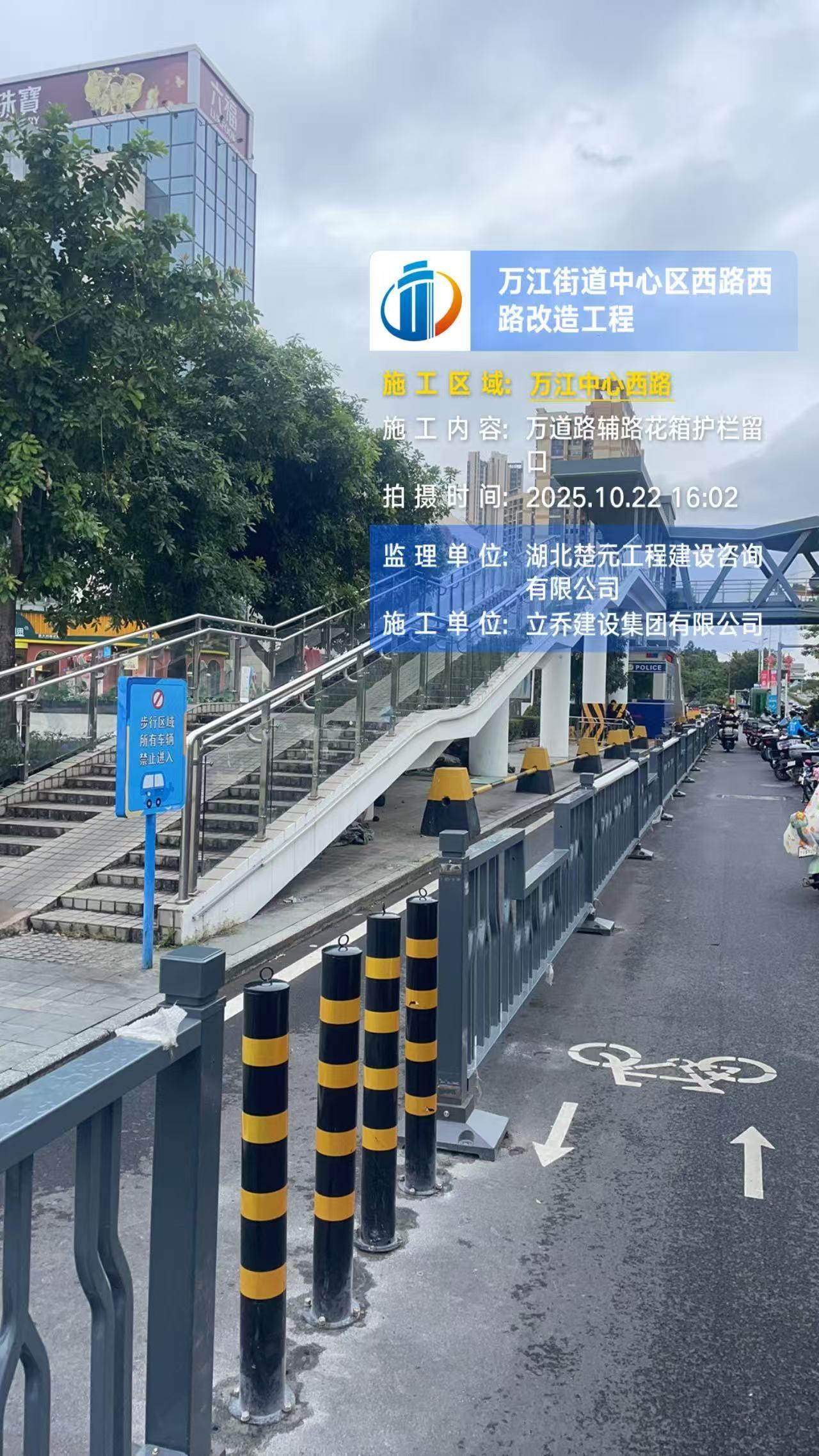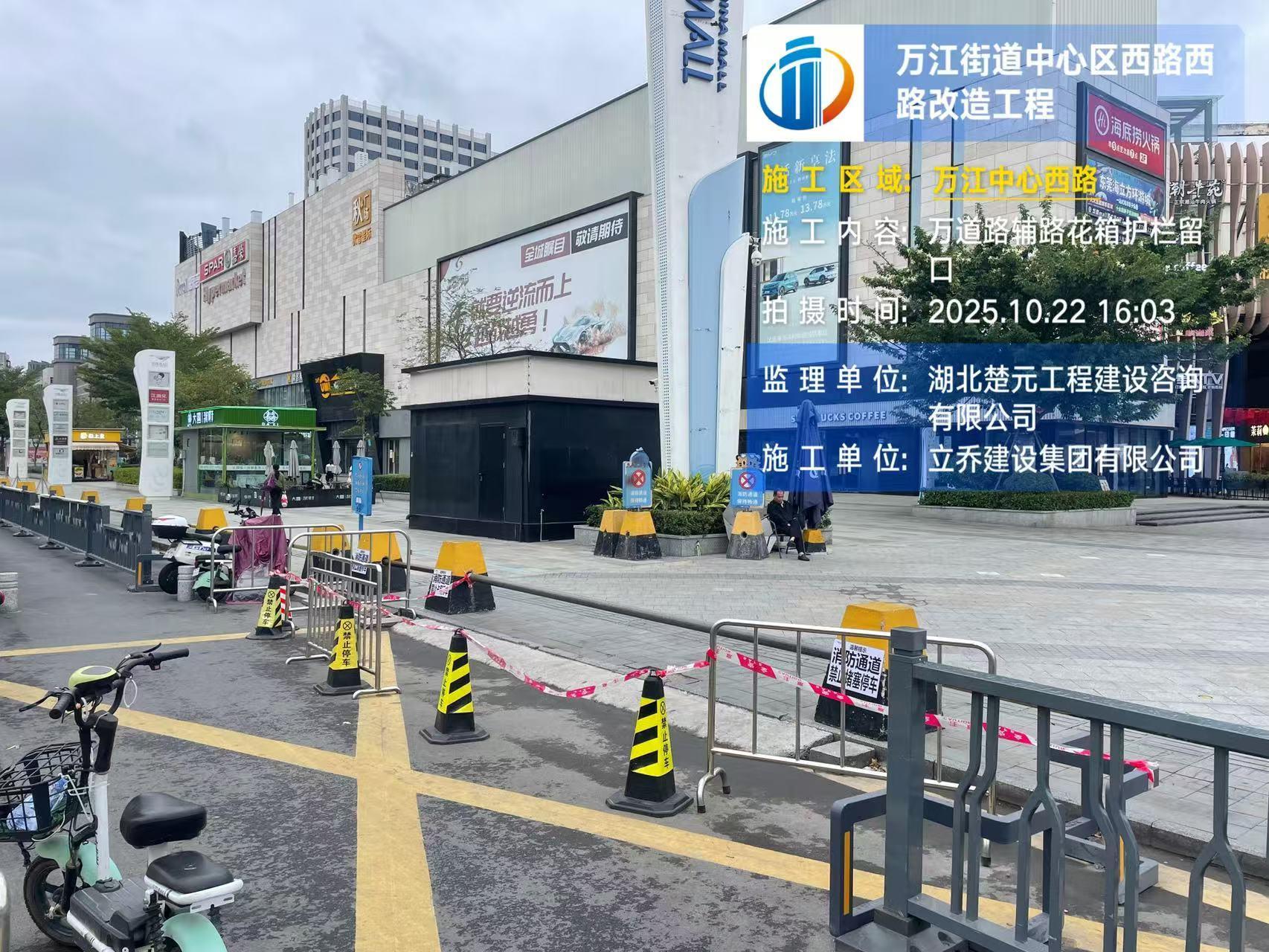 尊敬的市民,您好!您反映的问题已收悉,现回复如下: 经查,您反映位置涉及万道路交通设施改造工程的范围,万道路应交通管理部门意见为打造快速路段,天和百货对出的非机动车道,由于该处电动自行车占道违规乱停乱放导致影响行人行车安全。 目前采用钢栏杆分隔固定,天桥口、公交站口设单支钢管桩供行人通行,要求电动自行车在规定停放点停放,由城管分局加强管理引导市民规范停车秩序。建议市民遵守交通法律法规,确保安全礼让文明出行,施工造成不便敬请谅解。 如有疑问,请联系东莞市万江工程建设中心,联系电话: 0769-28630899/22712211 。感谢您对我们工作的理解和支持!