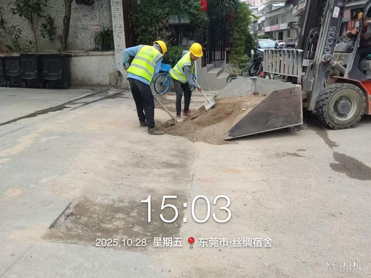 东城樟村丝绸宿舍小区门口,10月12日开始挖坑不知道修什么,现在25号了,其他地方都修补好,就只有丝绸宿舍小区门口路面还没补好,严重影响我们小区居民出行,请尽快修复好路面
