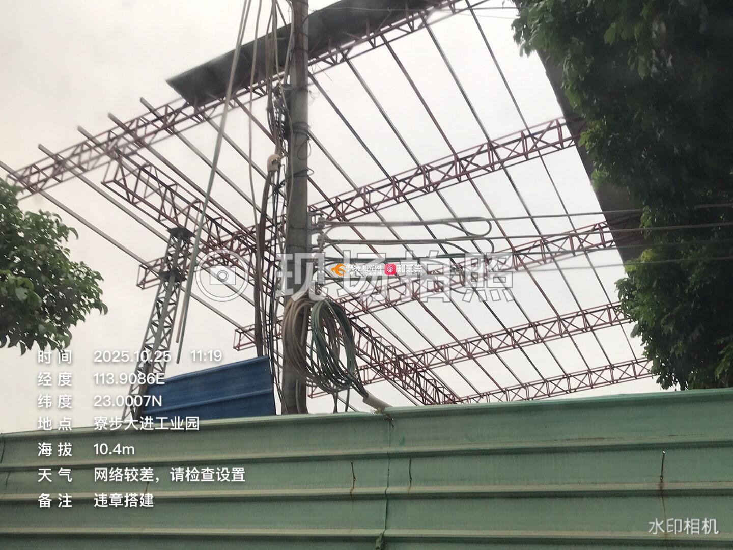 尊敬的市民,您好!您反映的问题已收悉,现回复如下: 城管分局执法人员于2025年10月29日到现场检查,经核查,现场位于寮步镇西溪村芦溪二路30号地块内,关于小桔充电桩搭建物问题,已完成《现场勘验笔录》、《询问笔录》,案件继续跟进。关于铁场搭建物,已责令当事人自行拆除加固的C型横杆,恢复原状,10月底已完成整改。水泥地块放置的为可移动雨棚。感谢您对我们工作的理解和支持!