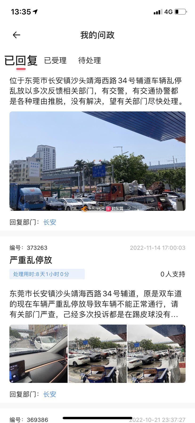 位于东莞市长安镇沙头靖海西路34号的辅道,天天都有车辆违停乱放,投诉都是来看一下就走的,然后就回复信息说:工作人员人手不足,加强巡逻,这些的,但是有人来巡逻吗,打122投诉就是说这是辅道不是他们管的,打85333541投诉:人家直投说,你不要打电话来了,我们很忙的,这种事情打给交警,我们没空去管这些的,看看这长安镇都是请了一些什么人啊。