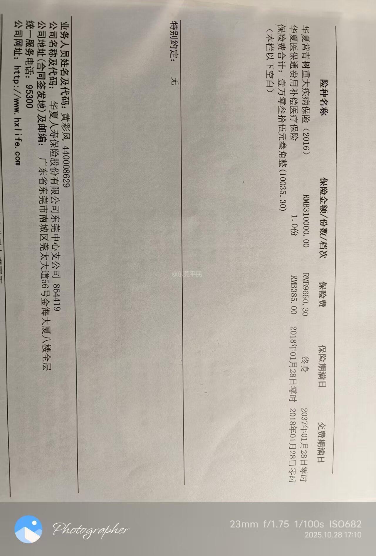 本人于2017年1月27日购买华夏保险(2023年被瑞众保险接管)“华夏常青树重大疫病保险“,期间银行每年正常扣款保费成功。但2023年的保费本人在扣款期限内存足费用的前提下华夏保险没有扣款成功。这二年本人已寻求华夏保险公司.东莞银保监局部门介入处理都无办法处理。至今(2025年10月)造成本人此份保险已永久终止。希望真心为民办实事的有关部门能介入了解协助处理。 同时在此也反映东莞银保监局接听投诉电话23031225,23031200一直处于无人接听状态,希望有关领导了解此事。