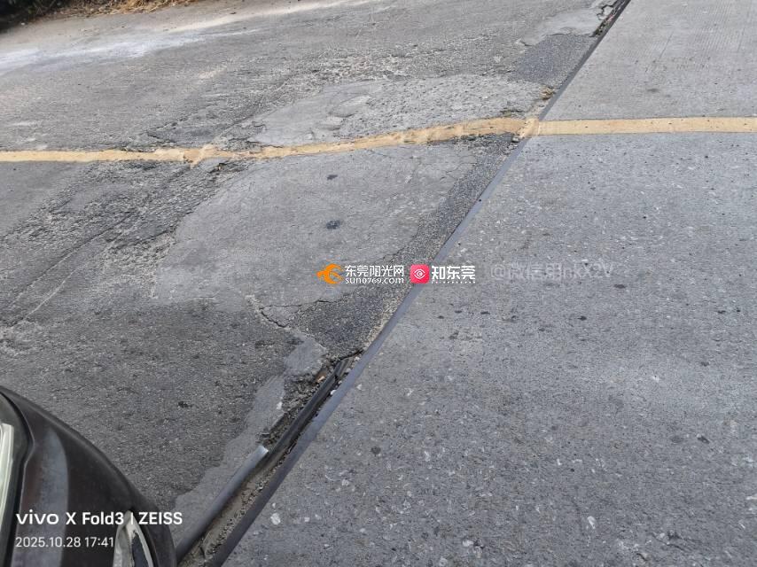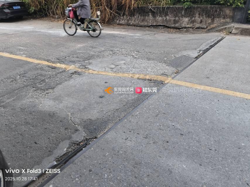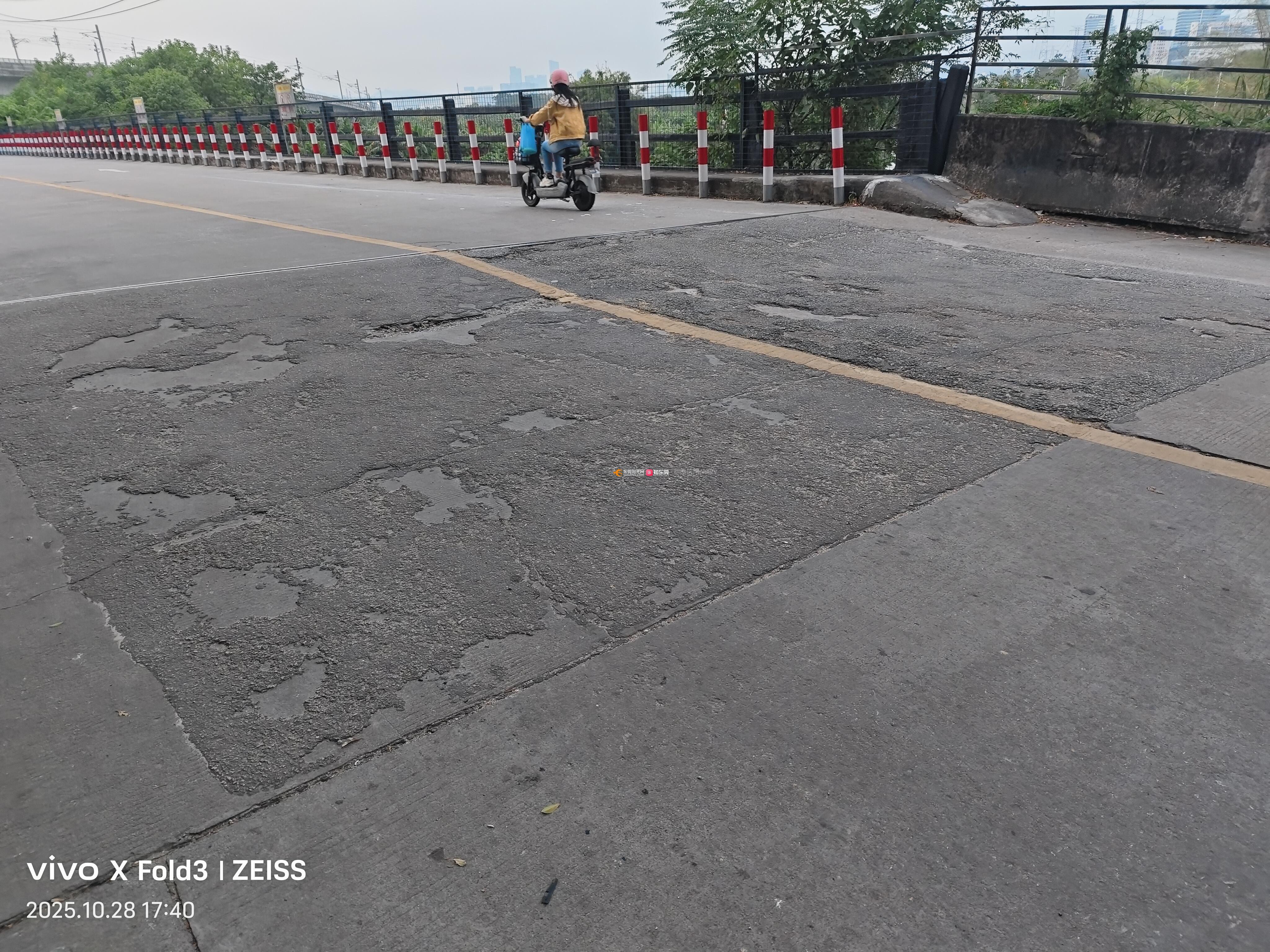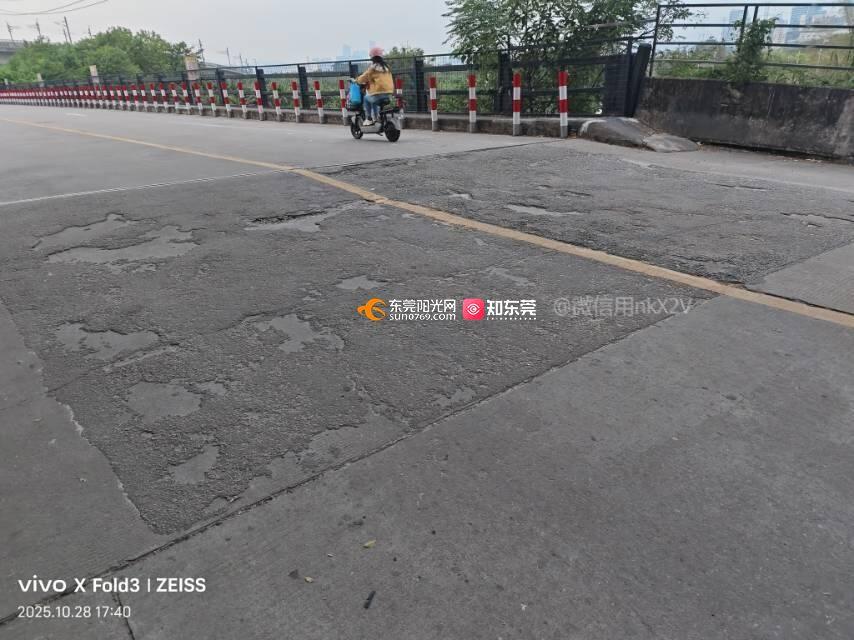 槎滘进园大道往鸥涌方向的沙涌桥两端路面破损