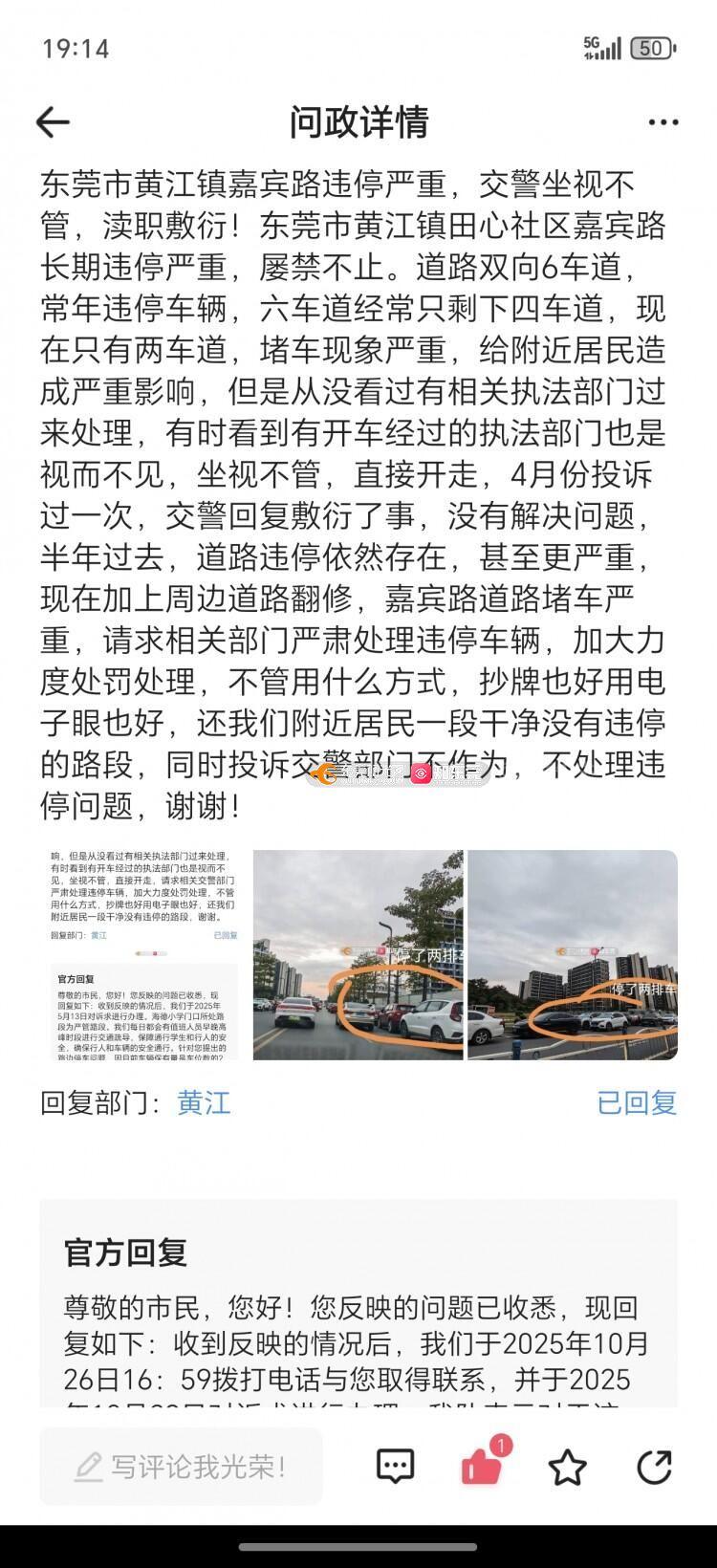 东莞市黄江镇嘉宾路违停严重,交警坐视不管,渎职敷衍