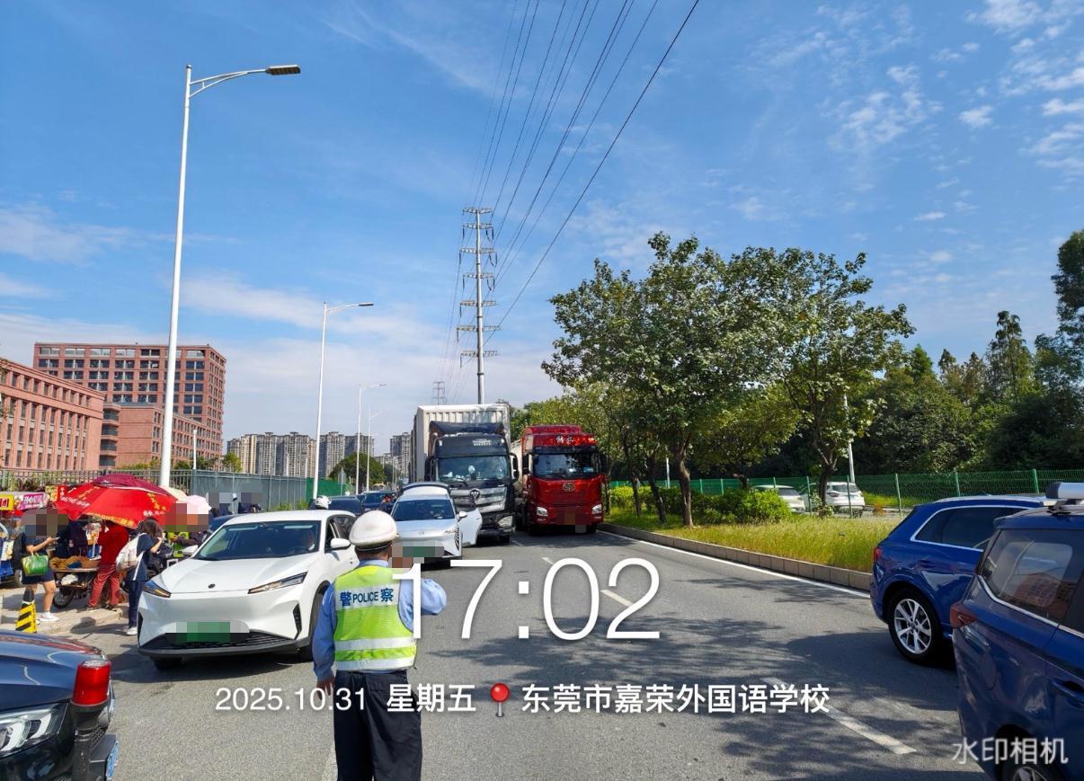 麻涌嘉荣外国语学校周五放学造成附近交通堵塞严重