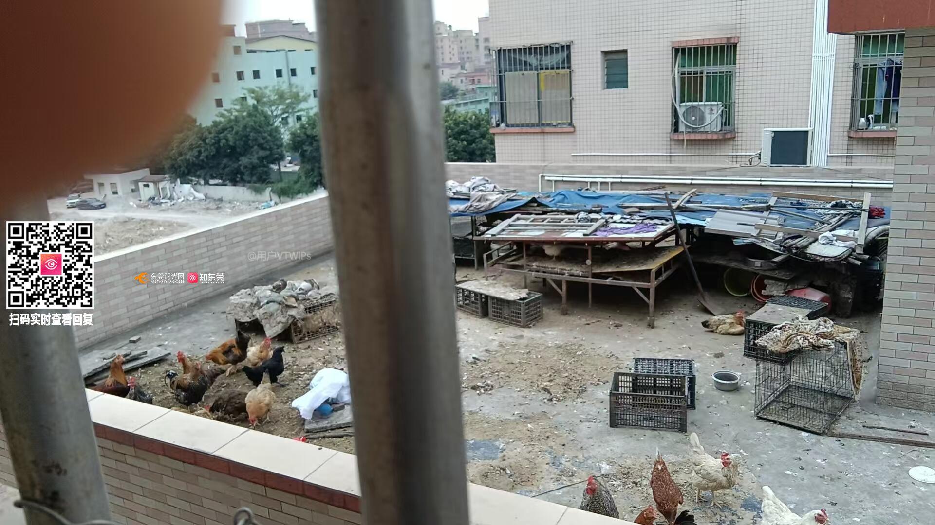 东莞市虎门镇路东新围九巷76号楼顶养殖禽类排放污染物,严重影响周围居民生活环境