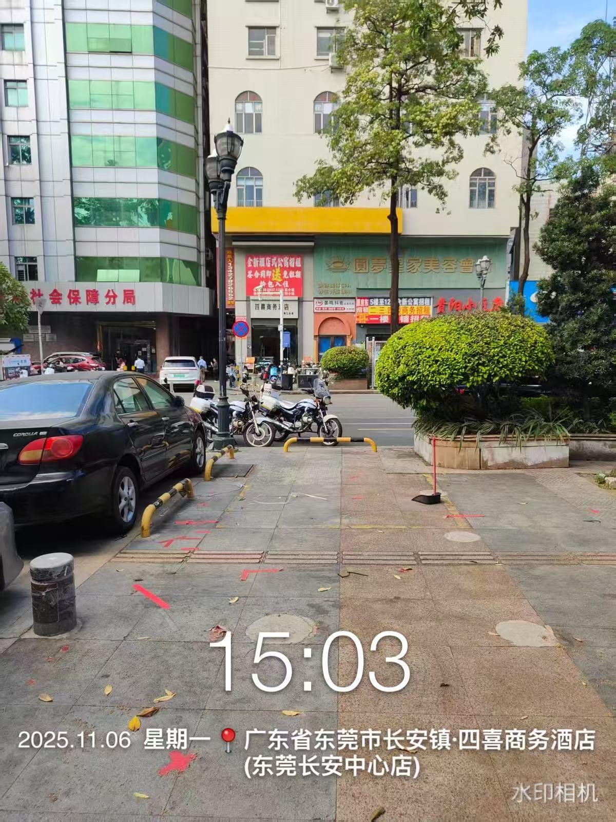 长安镇长中路上电动自行车商家长期占用门口的公共停车位,人行道诊经营(如五星钻豹,绿箭,台玲,雅迪等)专卖店。