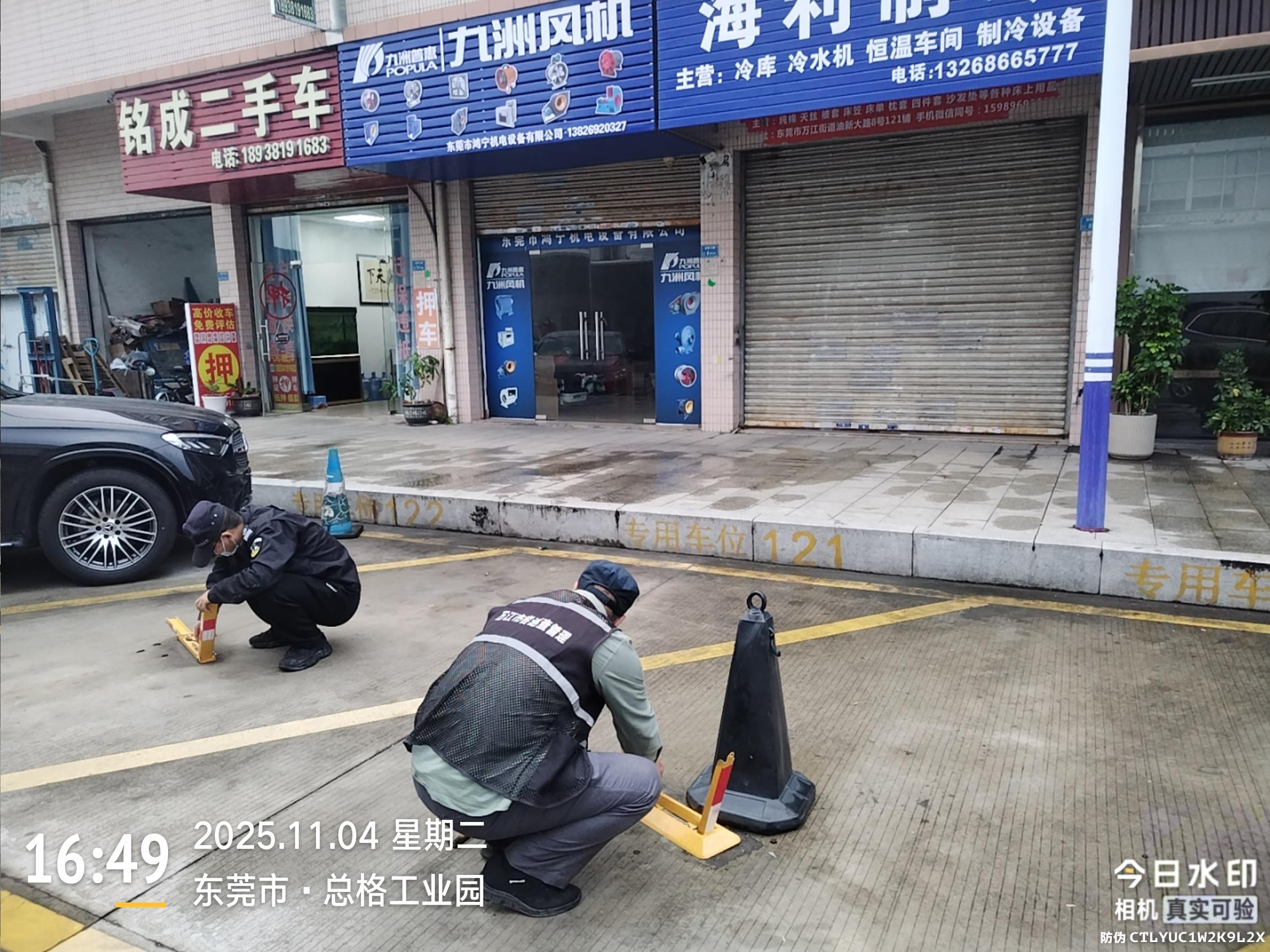 东莞市 万江区油新路2号总共工业园两侧路边的公共车位遭私人商户强制上锁占位,这边车位有大量空位但是都被商户以及工业园内给强行霸占,不停车也不让别人停导致我们每天在工业区上班人员车辆没处停放只能停在大路两侧,有严重安排隐患,10.28号有管部门有开拆除了部分地锁的,但是现在拆除的地锁又重新安装上了
