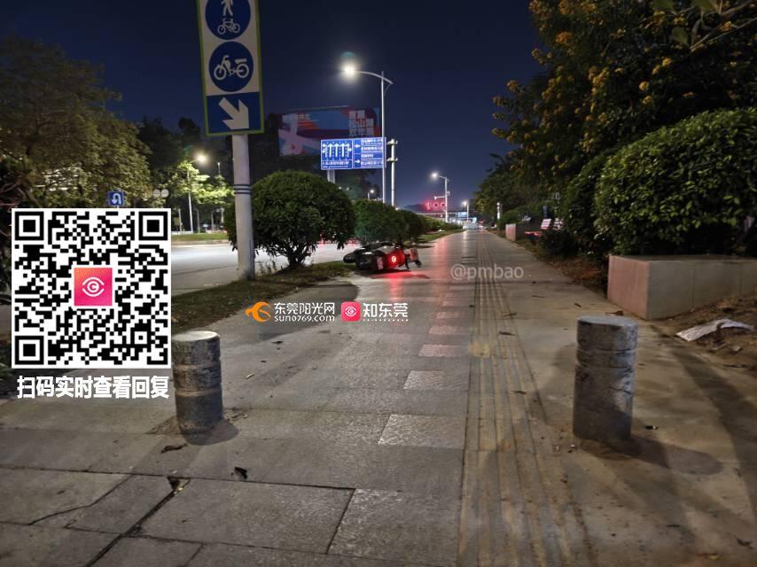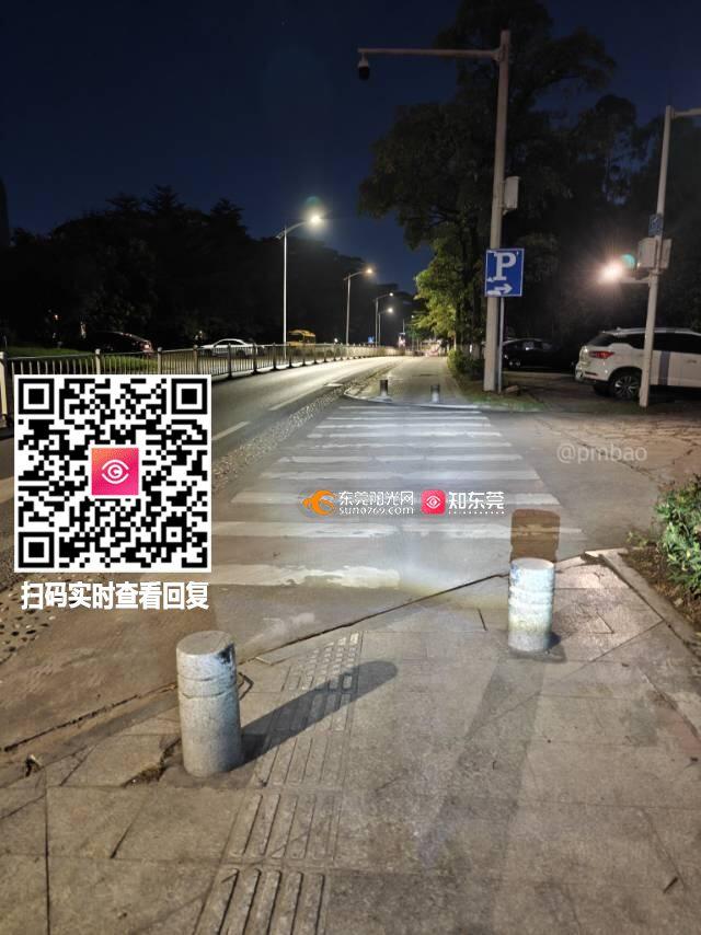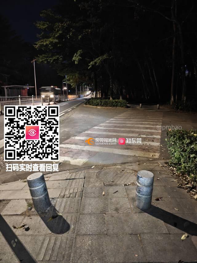 松山湖部分路段,如工业东路、大学路等,非机动车道阻车桩无反光胶带,在夜间及雨天,视野不清晰时,非机动车撞上阻车桩,引发交通事故,造成人员受伤及财产损失