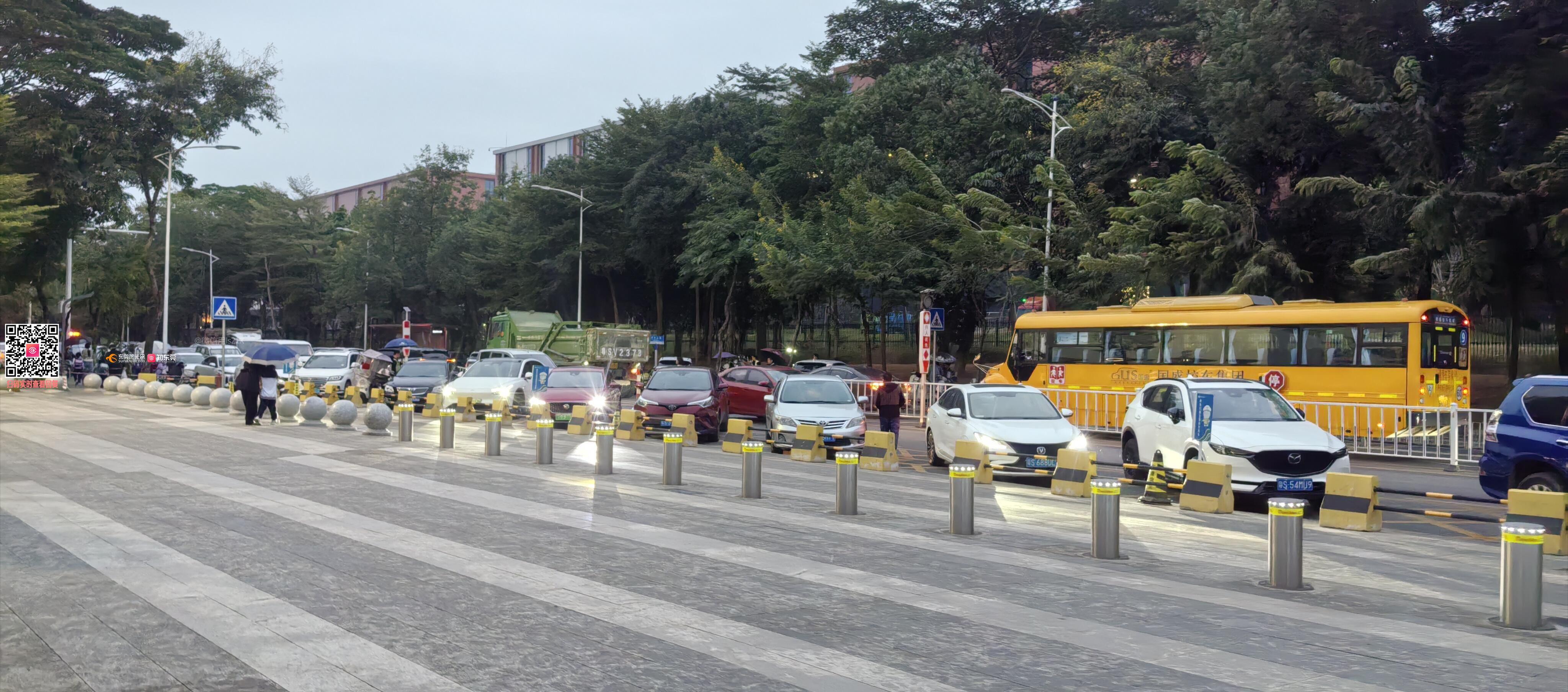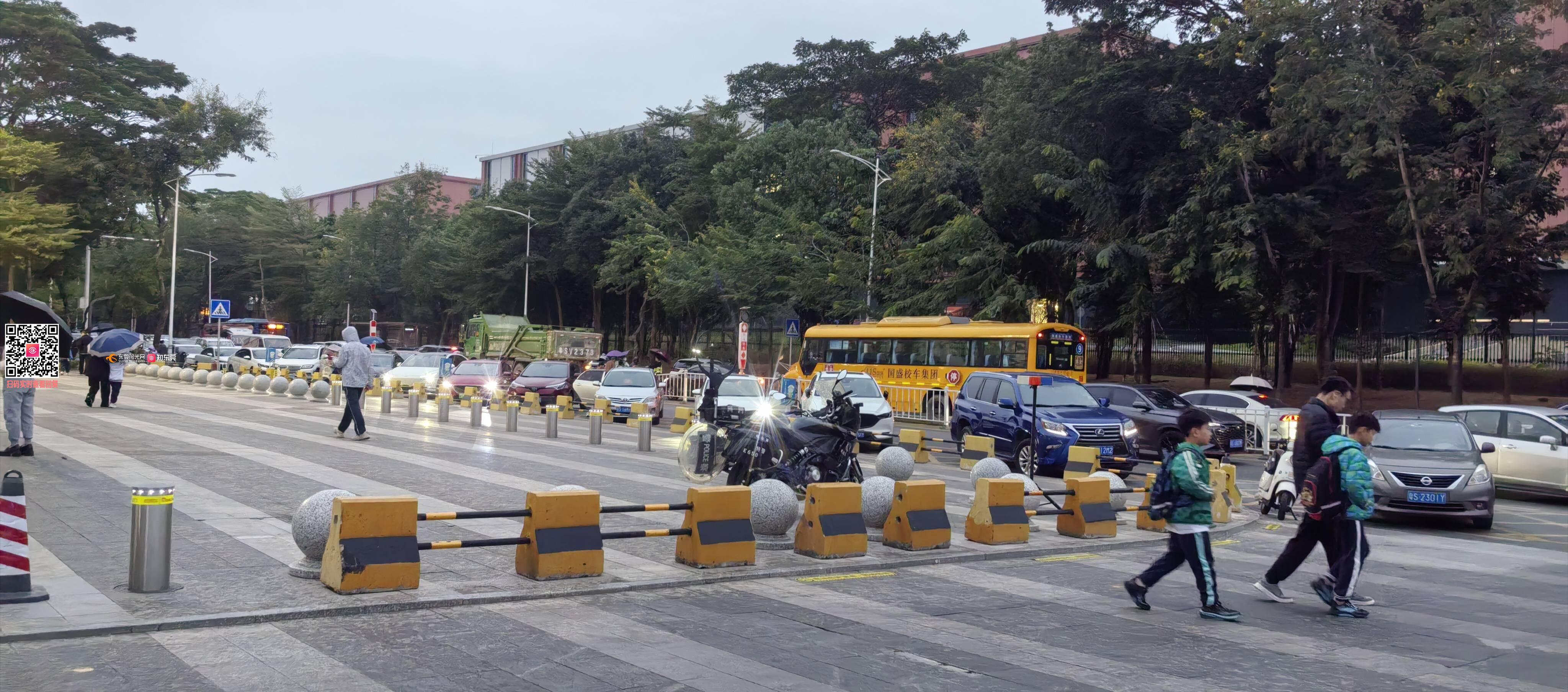 阿里山路,松山湖第三小学门口堵爆了,上次还说撤非机护栏,都这么久了还没行动!每天接送娃堵爆了,也没地方停车,别的学校都没这样搞,不知道你们用意何在,答应的撤到现在还没去解决