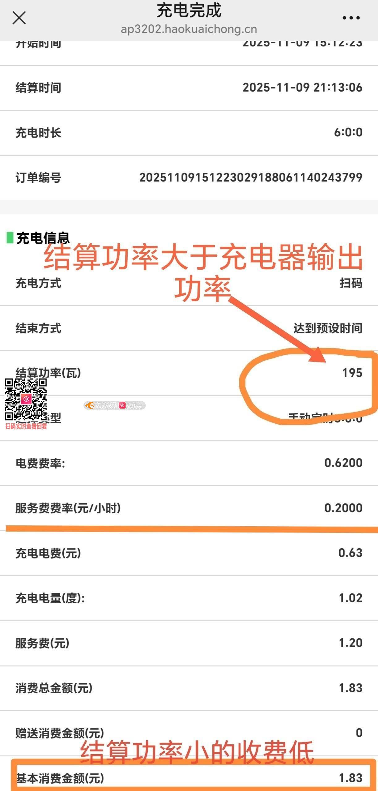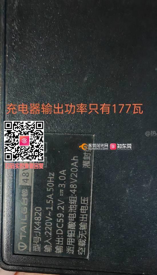 尊敬的市民,您好!您关于宏远活力康城3号门充电桩的举报已收悉。经南城市场监督分局核查,执法人员现场扫二维码,该公众号公示了收费标准,该公司提供了充电桩设备的质检报告。关于结算功率大于充电器输出功率,该公司表示,计算功率会随额定电压变化和气温环境变化而产生的功率结果会不一样。关于计量问题我局根据您的充电器标签上的数据计算符合计量规定。(根据充电器标签上的数据:输出功率(充电器提供给电池的功率)· 输出电压:59.2V· 输出电流:3.0A· 输出功率 = 59.2V × 3.0A = 177.6W(约 178W)输入功率(从插座获取的功率)· 输入电压:220V· 输入电流:1.5A· 输入视在功率 = 220V × 1.5A = 330VA(伏安)· 实际有功功率会略高于输出功率(因为充电器有转换损耗),通常效率在 80%~90%。按典型效率 85% 估算:输入有功功率 ≈ 178W ÷ 0.85 ≈ 209W(实际范围约 200W~250W)总结· 额定输出功率:约 178W· 实际消耗功率:约 200W~250W(家用插座侧计量))综上,鉴于该充电桩未涉及我局职能范围的违规经营行为,我局决定不予立案,感谢您对我们工作的支持。