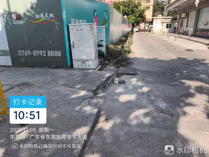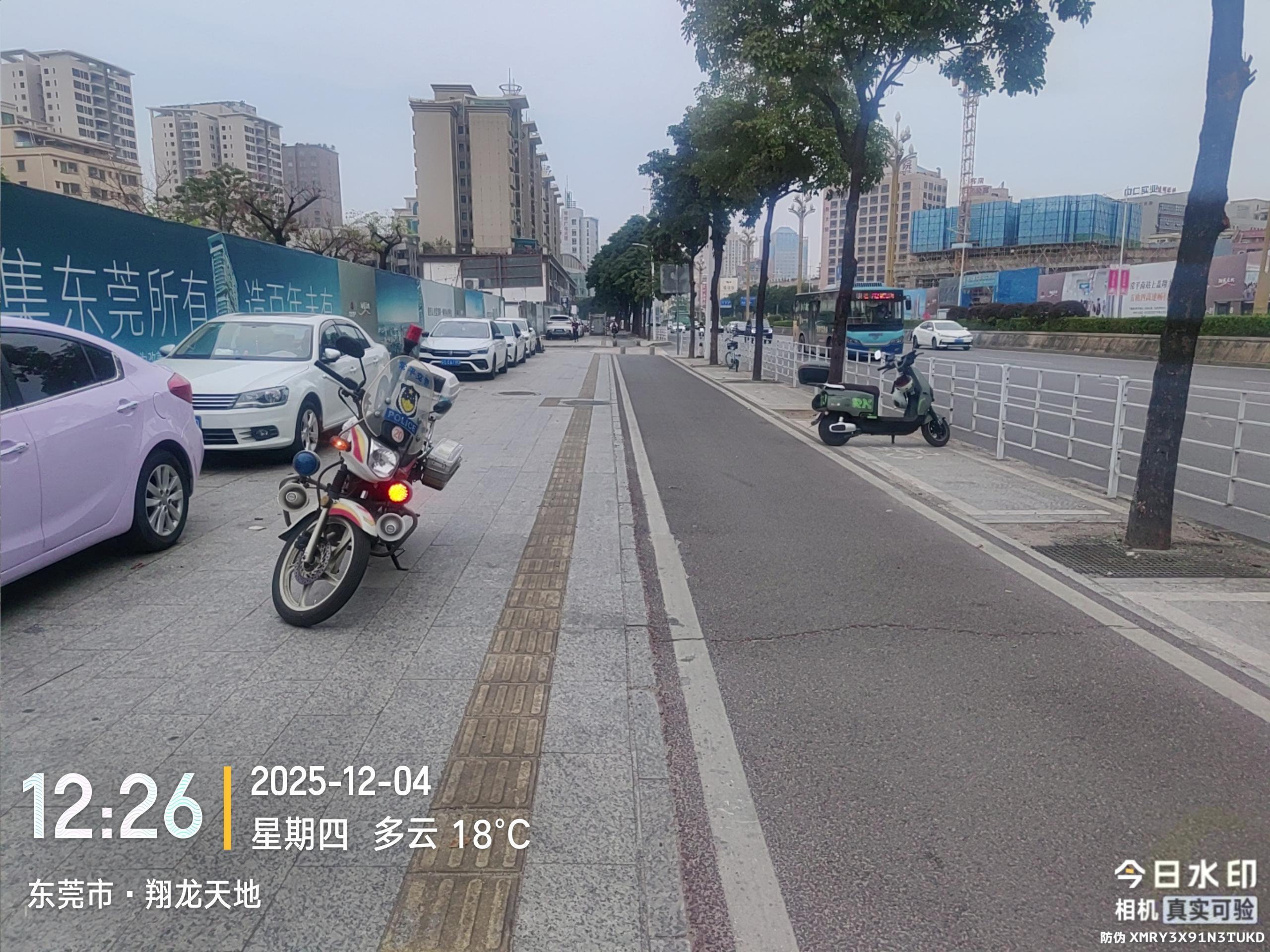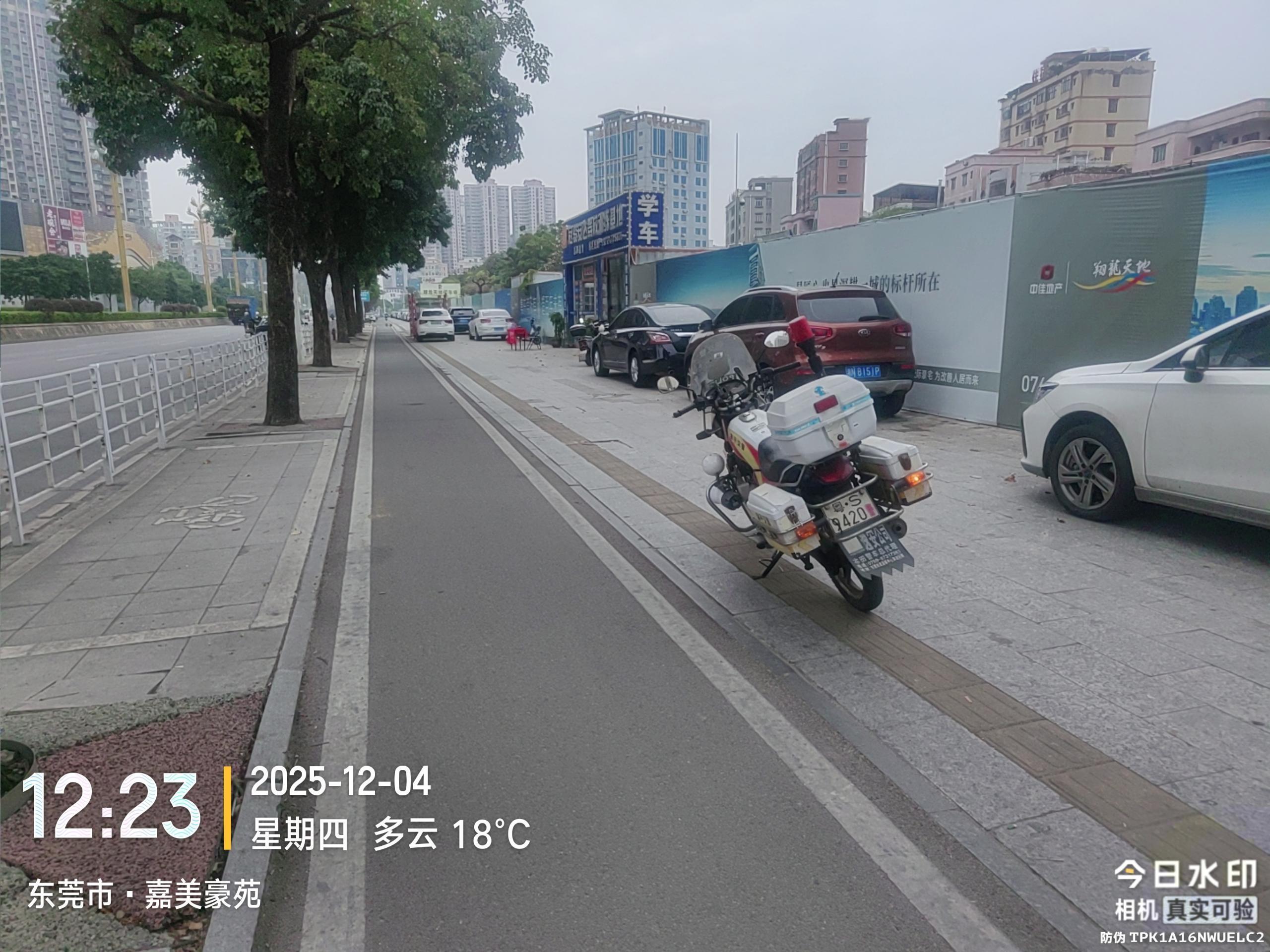 翔龙天地临时停车场(常平大道89号)外两侧非机动车道、冠骏安达驾校常平训练场两侧非机动车道,存在机动车乱停乱放现象。该路段长期被机动车违规占用停放,大量车辆直接停靠在非机动车道两侧,甚至部分车辆横向斜停,导致原本狭窄的非机动车道被完全堵塞,非机动车(电动车、自行车)通行空间被严重挤压。此外,由于机动车的乱停碾压,该路段非机动车道路面已出现多处损坏,存在裂缝、坑洼、地砖松动等情况。尤其是雨天,坑洼处容易积水,骑行时视线受阻,极易导致车辆打滑、骑行者摔倒受伤;损坏的路面也给推婴儿车、轮椅出行的居民带来极大不便,存在明显的安全隐患。