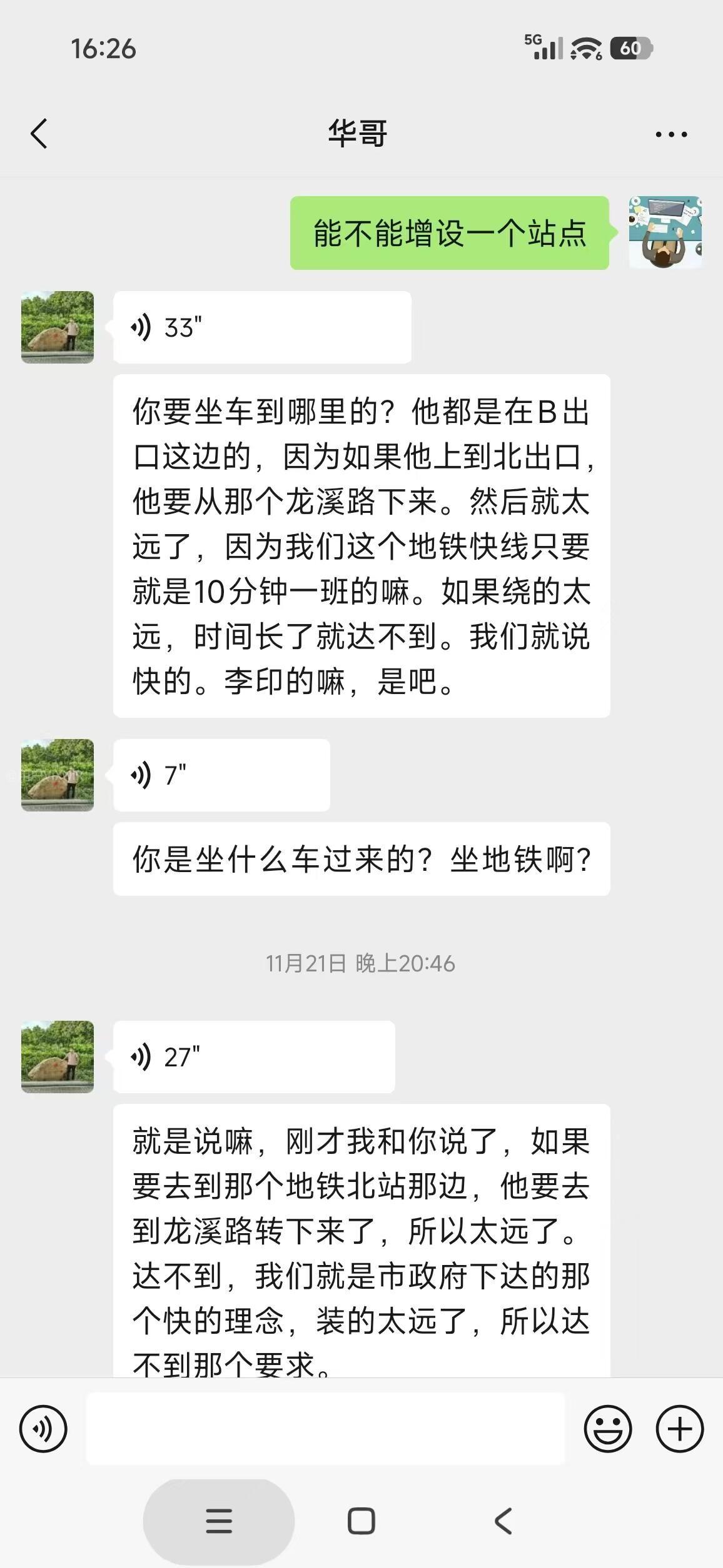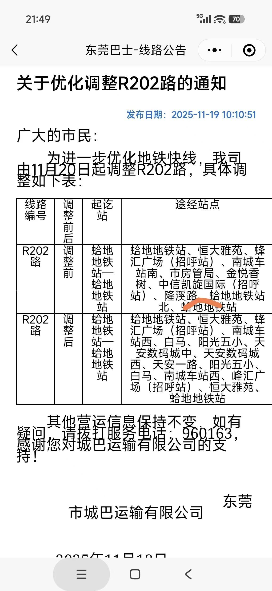 经本人实地体验及地铁站工作人员、值班站长联合确认:城巴所提及的 “100 米路段” 无交通信号灯,车流密集且无专门的无障碍过街设施,轮椅通行极易发生交通事故,工作人员现场协助时也明确表示 “无法保障安全”。为规避风险,我只能选择绕行 300 米有人行道的路段,但该路程对轮椅使用者而言耗时耗力,单程推行需耗费近 20 分钟,且沿途无休息驿站,严重影响日常通勤效率与出行体验。此前,我多次向交通运输局、东莞城巴公司提出调整 R202 线路诉求,均被以 “快线需快准运营” 为由拒绝,导致我始终无法借助 R202 实现高效无障碍通勤,34 路公交 30 分钟的发车间隔也难以满足应急出行需求。