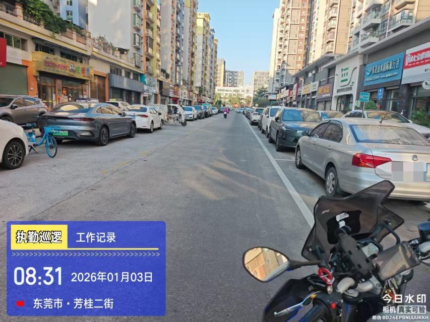 尊敬的市民,您好!您反映的问题已收悉,现回复如下:1、12月31日已联系您。感谢您对东城交管大队工作的监督和提醒!针对您反映的上述路段的违停情况,已通知铁骑加强对上址路段的巡逻管控,对违停违法行为做到及时发现提醒或处罚。市民若发现交通违法行为可通过微信关注东莞交警-业务办理-随手拍即可举报车辆相关交通违法行为。市民亦可拨打122,交管大队将及时派员到现场处理。2、主山社区已派工作人员对路面进行清洁。3、经了解,东莞市东城实业集团有限公司计划对芳桂二街北段进行升级改造,目前正在设计阶段。感谢您对我们工作的理解和支持!