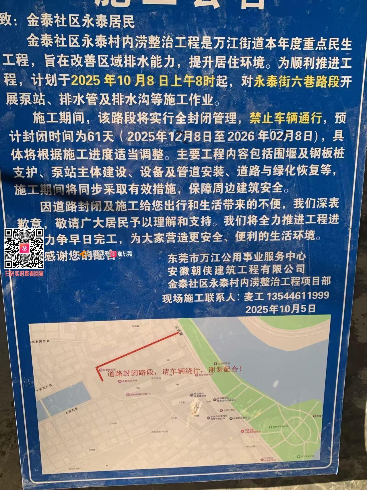 尊敬的市民,您好!您反映的问题已收悉,现回复如下: 经了解,经核实,此前我们根据万江工程中心施工工程,将金泰永泰街一巷路段排洪渠挖槽重新铺设,但施工过程存在流程不完善,损坏不赔偿的问题。针对这一情况,我们已制定专项整改方案,落实以下措施: 1. 现场整改:即刻安排专人修复破损地方,及时处理,确保质量完善。 2.监督施工流程,保障路面修复,避免路面出现水平积水问题,解决出行问题。 如有疑问,请联系金泰社区,联系电话:0769-23621123,感谢您对我们工作的理解和支持!