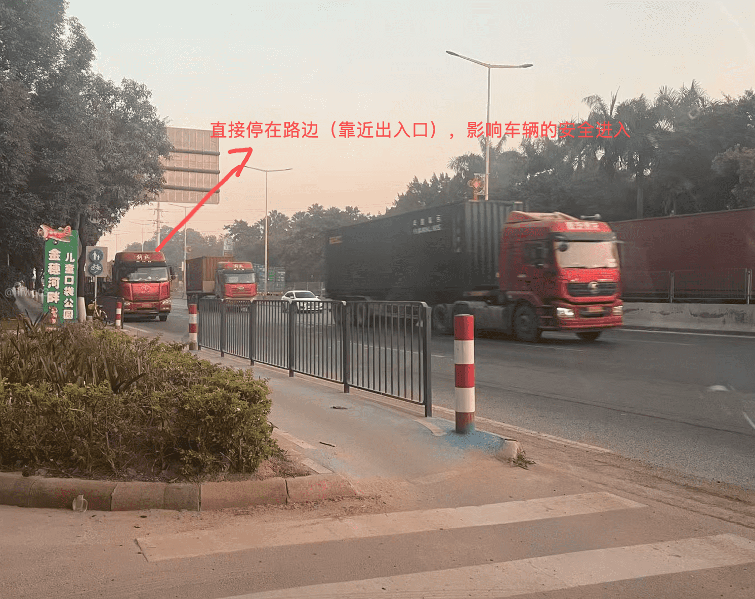因樟木头香樟半岛小区原有小桥被拆除,现老人、小孩、学生、校车及社会车辆均集中从东深路(樟深路)出口通行,人车混行严重,交通冲突明显,存在较大安全隐患。为防范交通事故发生,恳请贵部门尽快现场核查,并采取以下整改措施: 规范停车与通行秩序:在小区出入口及周边路段设置禁止停车标志,明确大货车禁停或限行要求,并在上下学及早晚高峰时段加强执法巡查,杜绝占道停车行为。 完善减速与警示设施:在出口路段设置限速标志,施划减速标线,同时完善反光标识、警示线,并增设“注意行人”“注意学生”等交通警示标志,提醒车辆减速慢行。 改善路口通行视距:对出入口及路口周边树木生长过高、枝叶遮挡视线的问题进行修剪或优化,消除视距盲区,提升路口整体通行安全性。