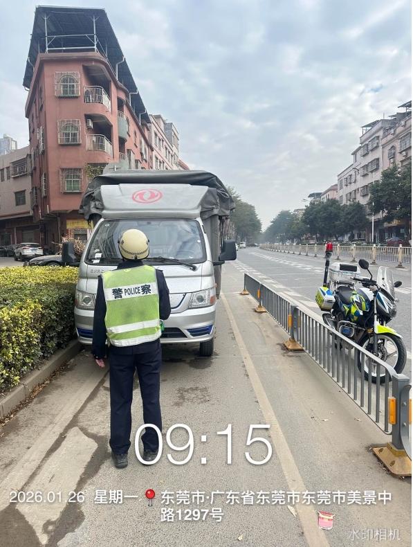 尊敬的市民,您好!您反映的问题已收悉,现回复如下:收到反映的情况后,我们于2026-01-26 9:15许为您办理,根据市民反映的情况,该路段非机动车道将加装阻车杆,目前正在进一步实施中,非机动车道违停情况已安排警力管控,请市民耐心等待。如有疑问,请联系大朗交管大队,联系电话:0769-83313882。感谢您对我们工作的理解和支持!