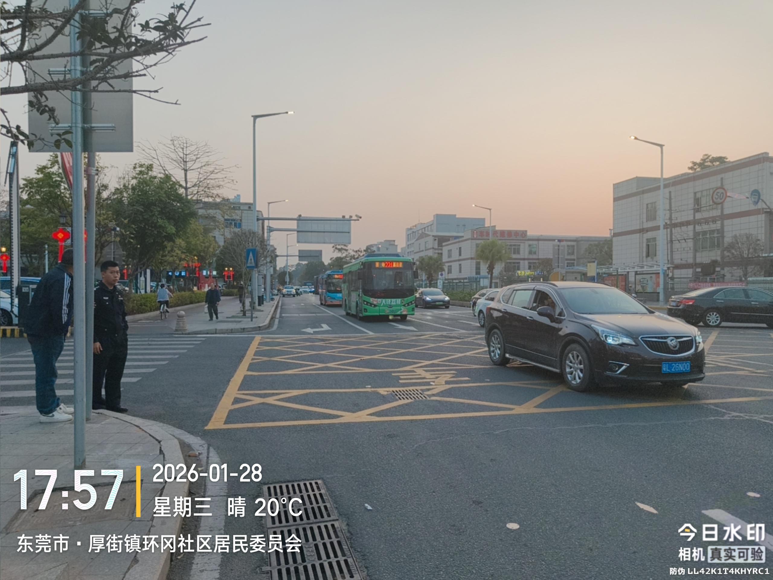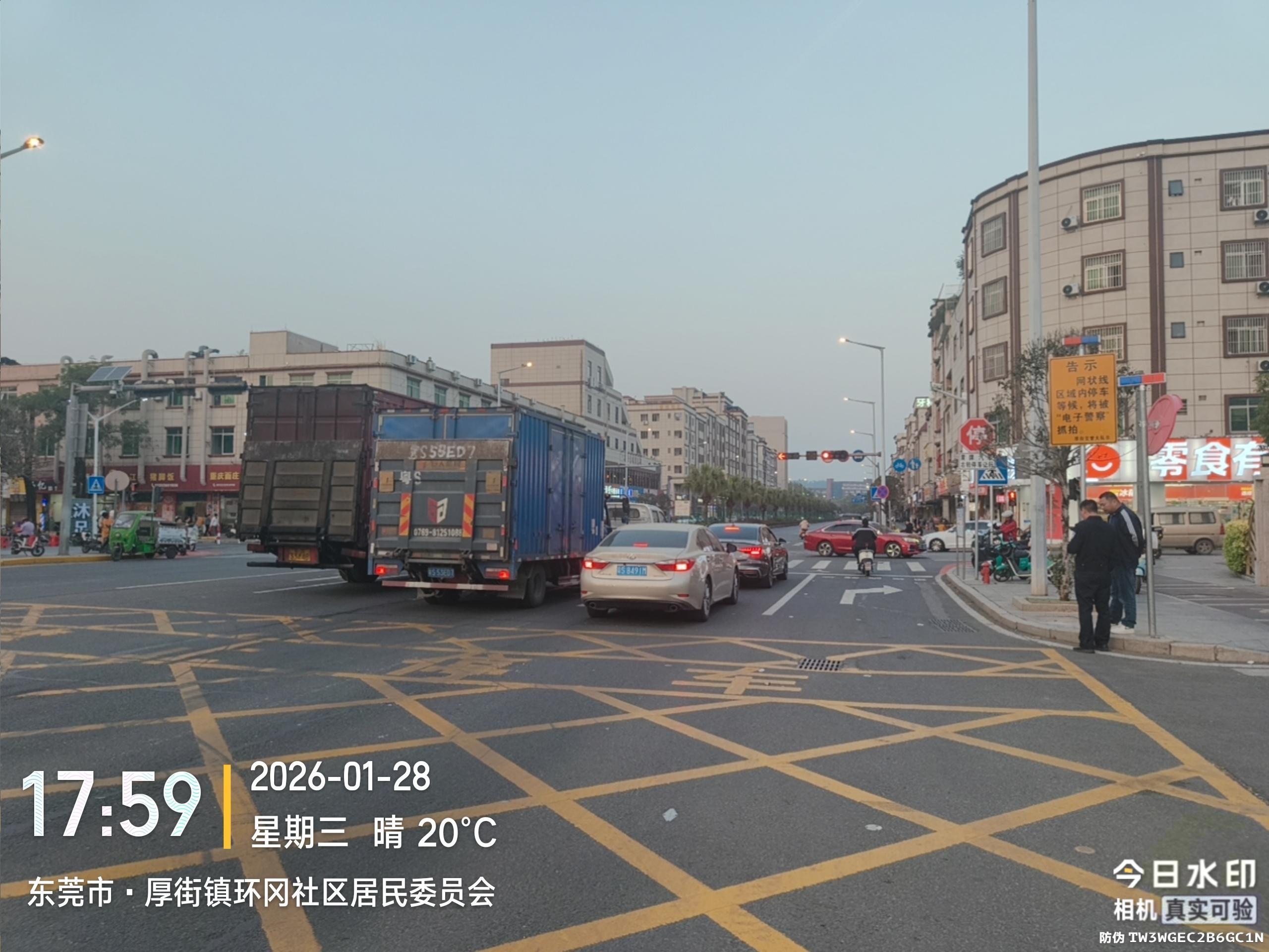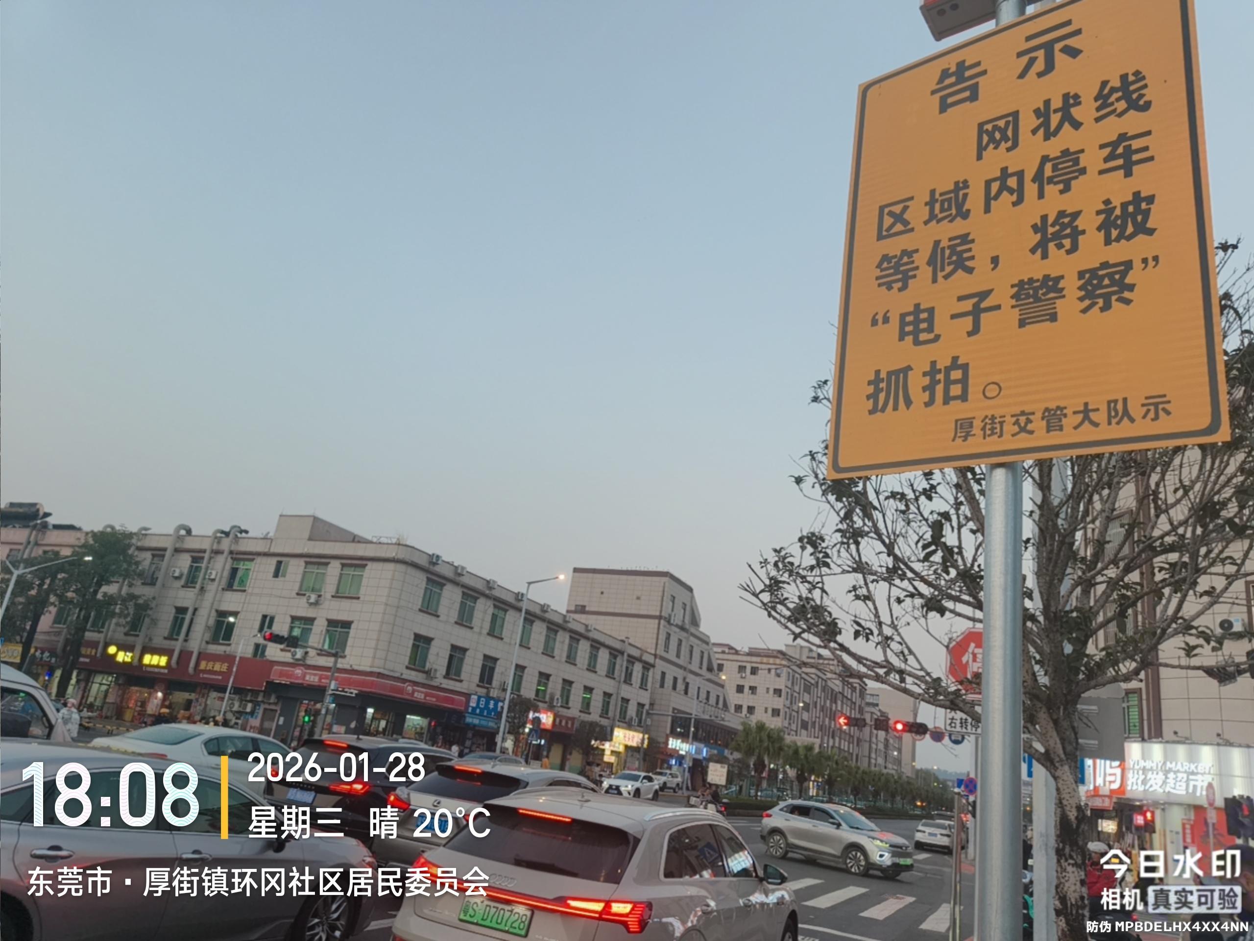 湖景大道与富华街路口,居委会门前湖景大道往东方向,在网格线前方新画了一条停车线,与网格线之前可以停两排车。 按规定红灯亮时,不能越过任一停车线。建议把旧的停车线擦除(图片中第一条停车线),这样红灯亮时可以停到网格前方空位,提高绿灯时通行效率。这个路口周末非常堵。