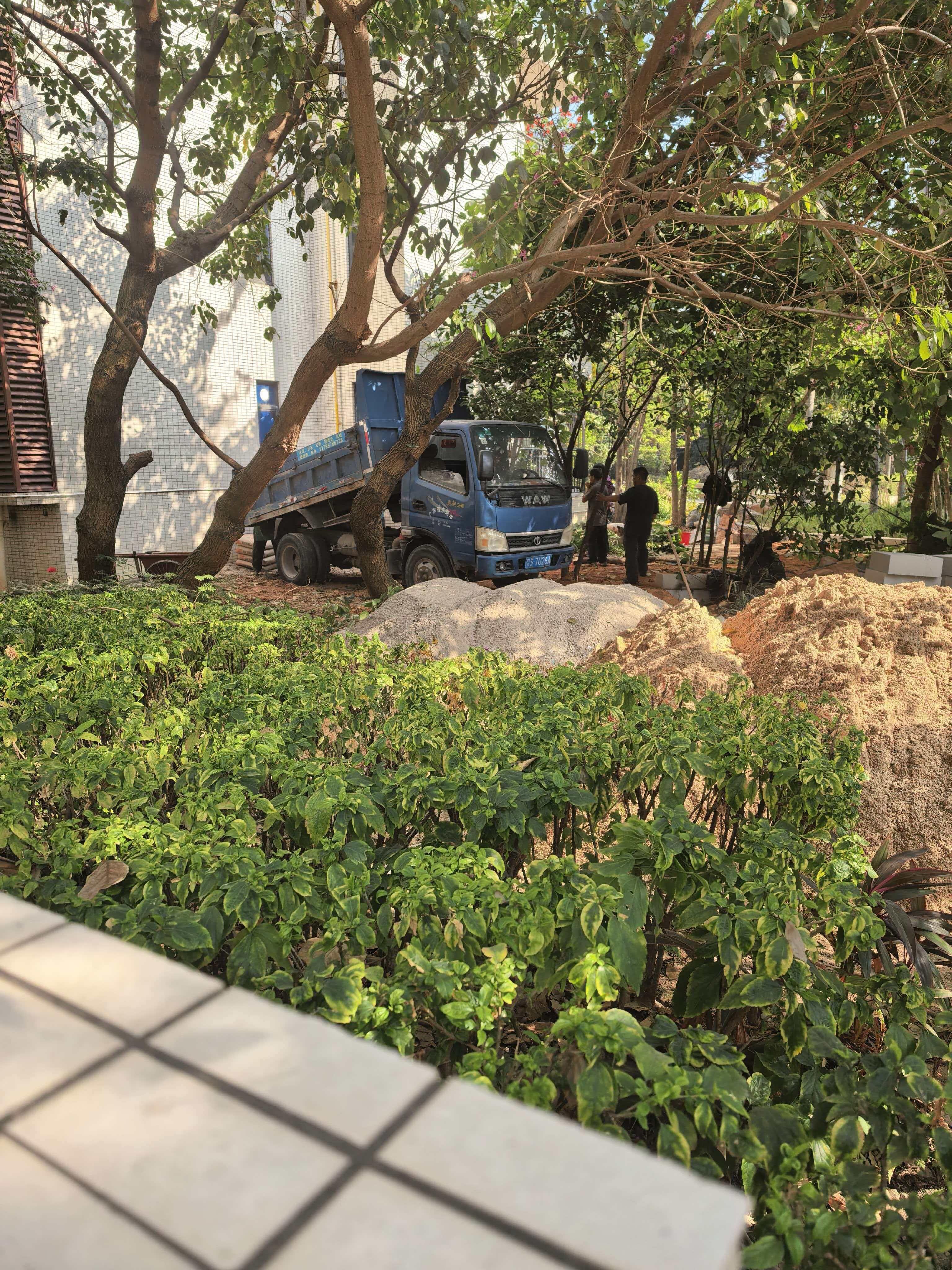 尊敬的市民,您好!您反映的问题已收悉,现回复如下: 收到您反映的情况后,我分局执法人员在2026年1月26日17:09已到现场勘察,同时联合房管所和物业对涉事业主进行了教育,该业主已于1月27日对硬化地面进行铲除并回填补种草坪。下来我分局将加强巡查与监督。执法人员于1月28日10:38致电您告知跟进情况。 如有疑问,请联系常平城管分局,联系电话:0769-83970123。感谢您对我们工作的理解和支持!