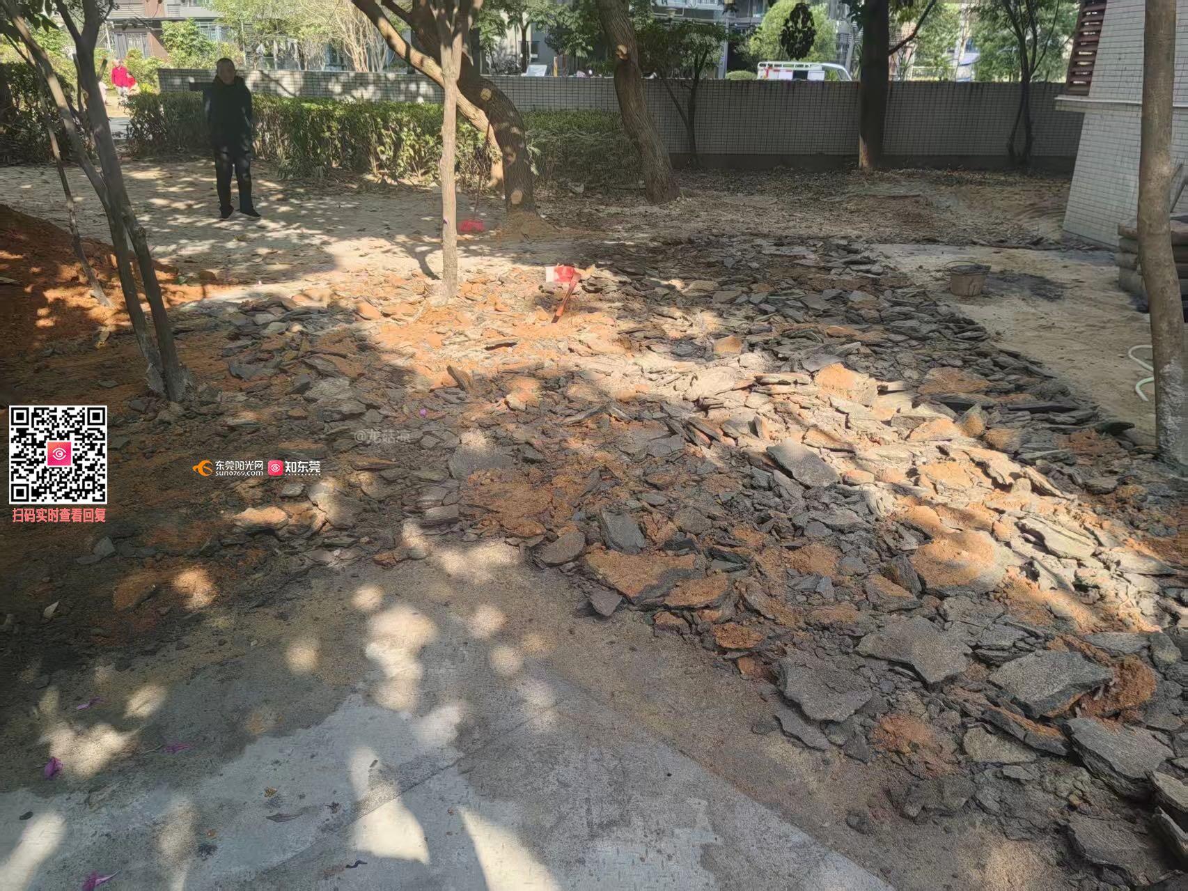尊敬的市民,您好!您反映的问题已收悉,现回复如下: 收到您反映的情况后,我分局执法人员在2026年1月28日15:50到现场勘察,您反映的5栋1楼我分局执法人员前期已做处理,该业主已于1月27日对硬化地面进行铲除并回填补种草坪。另,您反映的17栋1楼我分局执法人员已要求该业主两天内处理完违规堆放的建筑材料,现周边空地已补种了部分苗木。下来我分局将持续跟进。执法人员于1月29日9:50致电您告知跟进情况。 如有疑问,请联系常平城管分局,联系电话:0769-83970123。感谢您对我们工作的理解和支持!