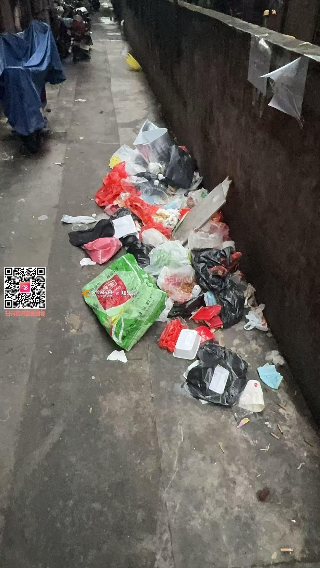 东坑镇黄屋大塘一巷后面地面垃圾堆几天也没环卫工人清理