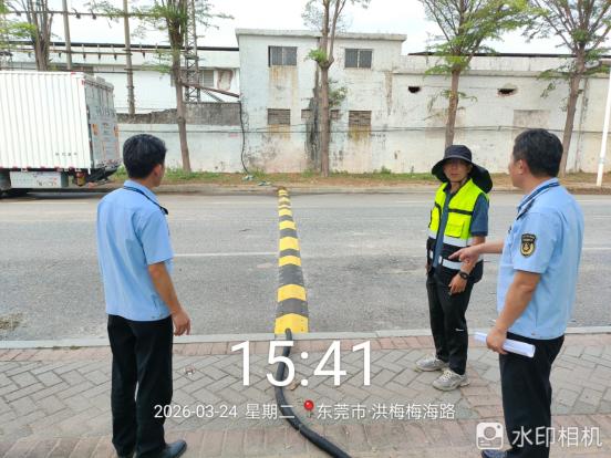 您好!我是途经东莞市洪梅镇梅海路路段的市民,发现该路段存在未经审批私自横穿路面铺设黑色管线的行为,管线裸露于车行道,部分用减速带固定,未设置任何施工公示与安全警示标志。 该行为违反《城市道路管理条例》《道路交通安全法》相关规定,存在管线破损、车辆颠簸失控等安全隐患,恳请: 1. 立即核查并责令责任方拆除裸露管线,恢复道路原状; 2. 依法对违规单位/个人进行处罚; 3. 加强辖区道路巡查,杜绝此类危害公共安全的行为。