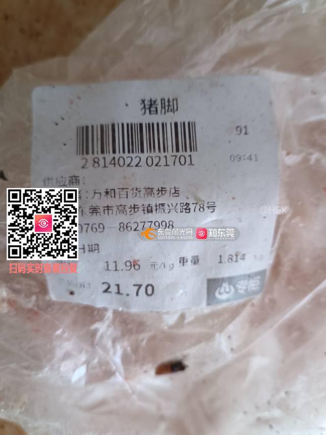 东莞市高步镇振兴路华润商场买的猪脚有股异味